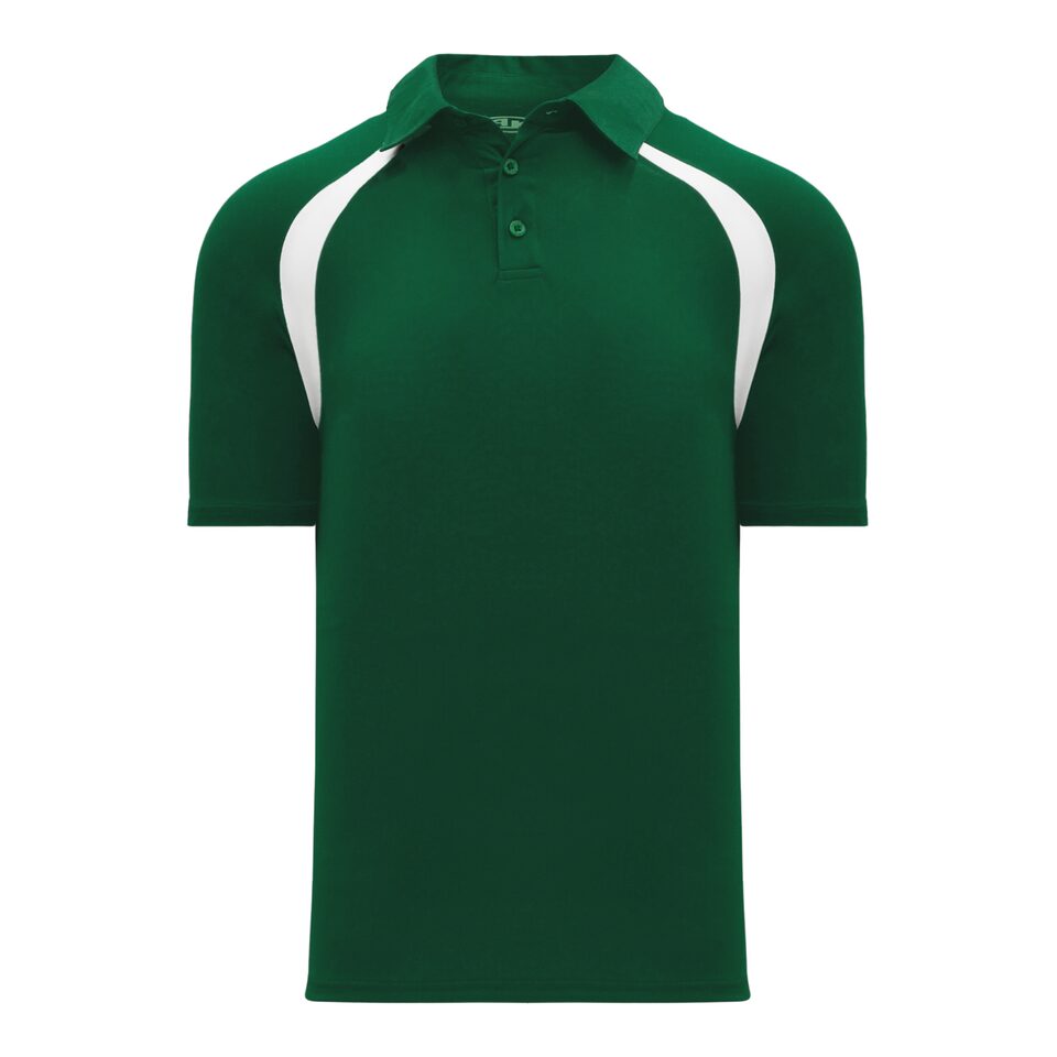 The A1820 Apparel Polo Shirt is made of moisture wicking actiflex, a polyester moisture wicking stretch fabric that is soft hand and very comfortable to wear. This apparel polo shirt is dark green/white but many other colours are available on our website. It is available in youth & men's sizes.