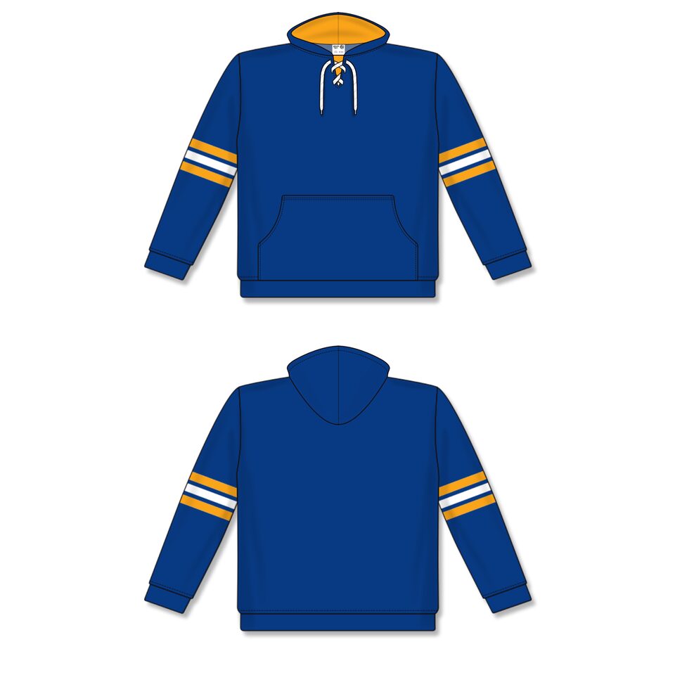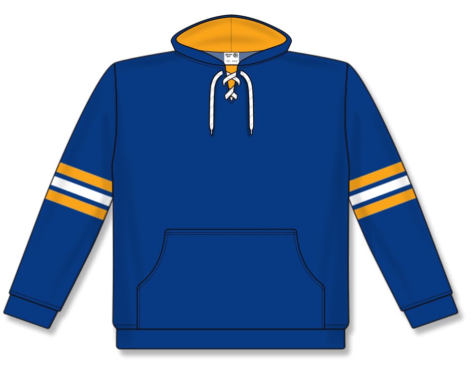 The A1845 Apparel Sweatshirt is made of polyfleece, a polyester fleece fabric that is soft hand, with a smooth exterior texture and warm fleece interior. This apparel sweatshirt is royal/gold/white but many other colours are available on our website. It is available in youth & men's sizes.