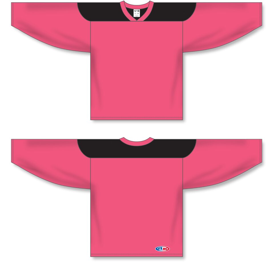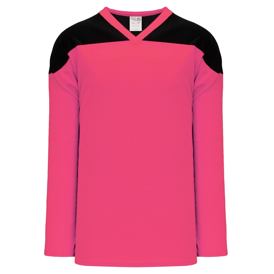 The H6100 League Hockey Jersey is made of midweight knit, a midweight polyester knitted fabric that is a lighter version of our AK-Knit fabric with more breathability. This league hockey jersey is pink/black but many other colours are available on our website. It is available in youth & adult sizes.