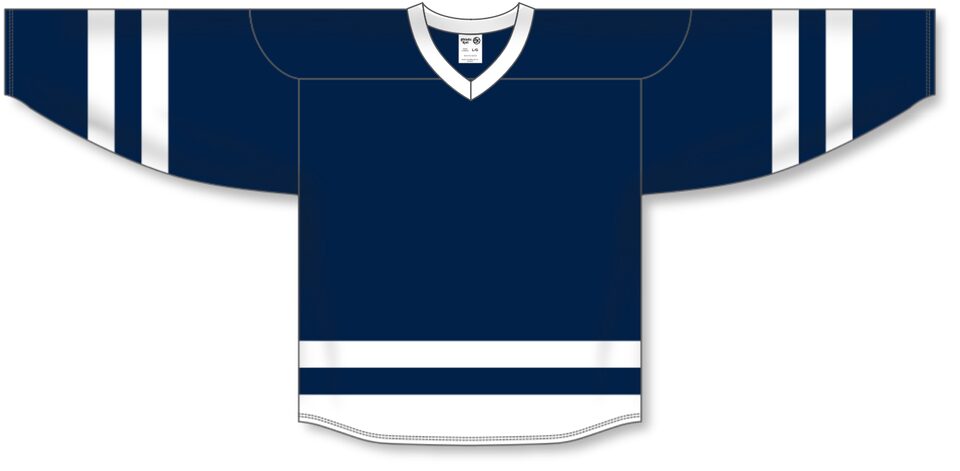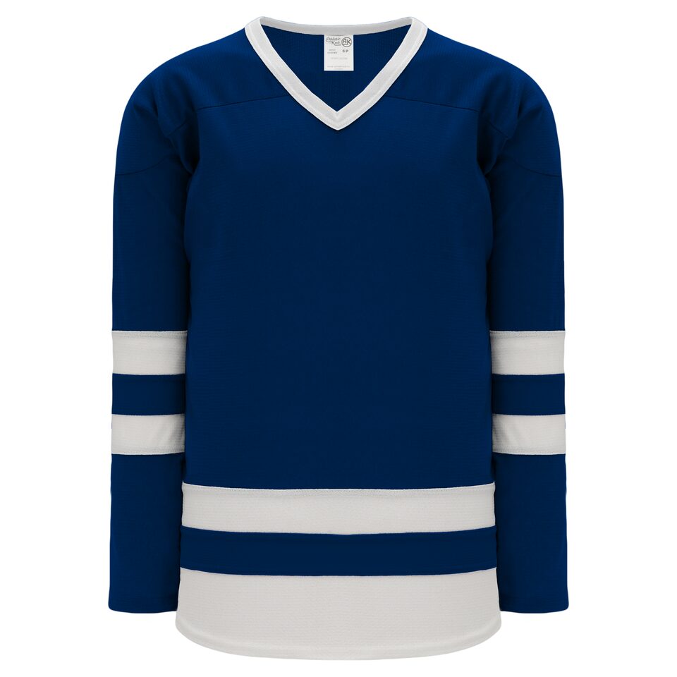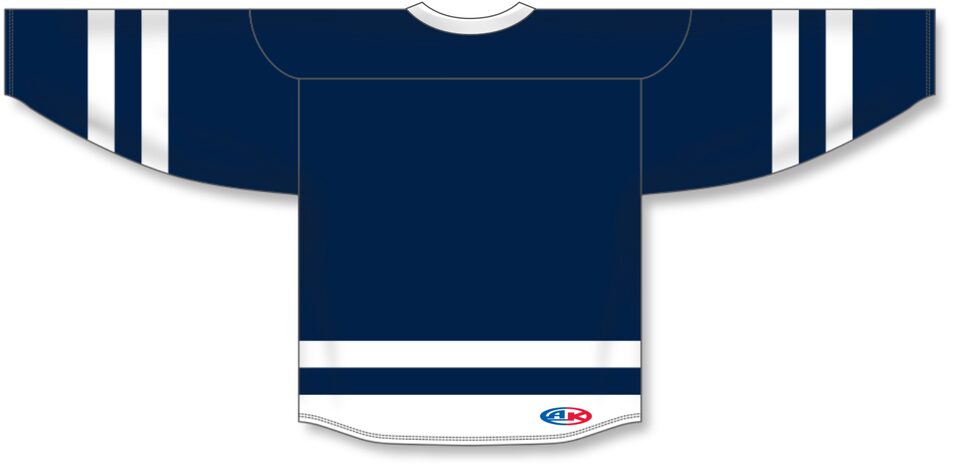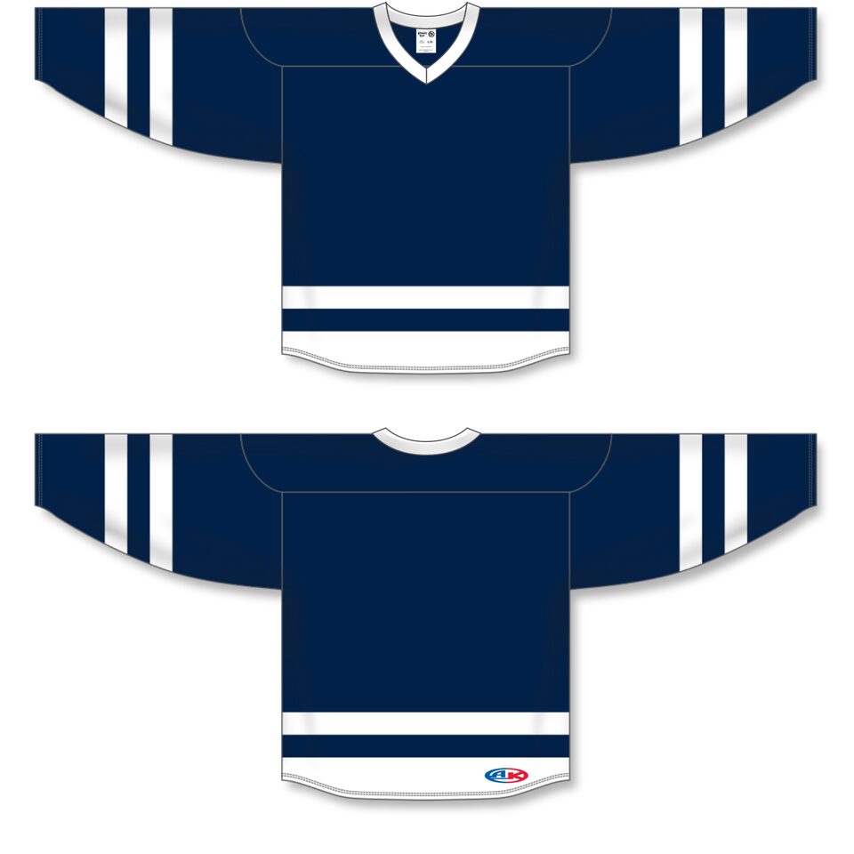 The H6500 League Hockey Jersey is made of midweight knit, a midweight polyester knitted fabric that is a lighter version of our AK-Knit fabric with more breathability. This league hockey jersey is navy/white but many other colours are available on our website. It is available in youth & adult sizes.