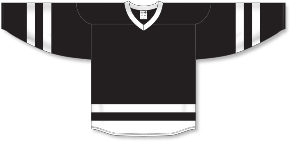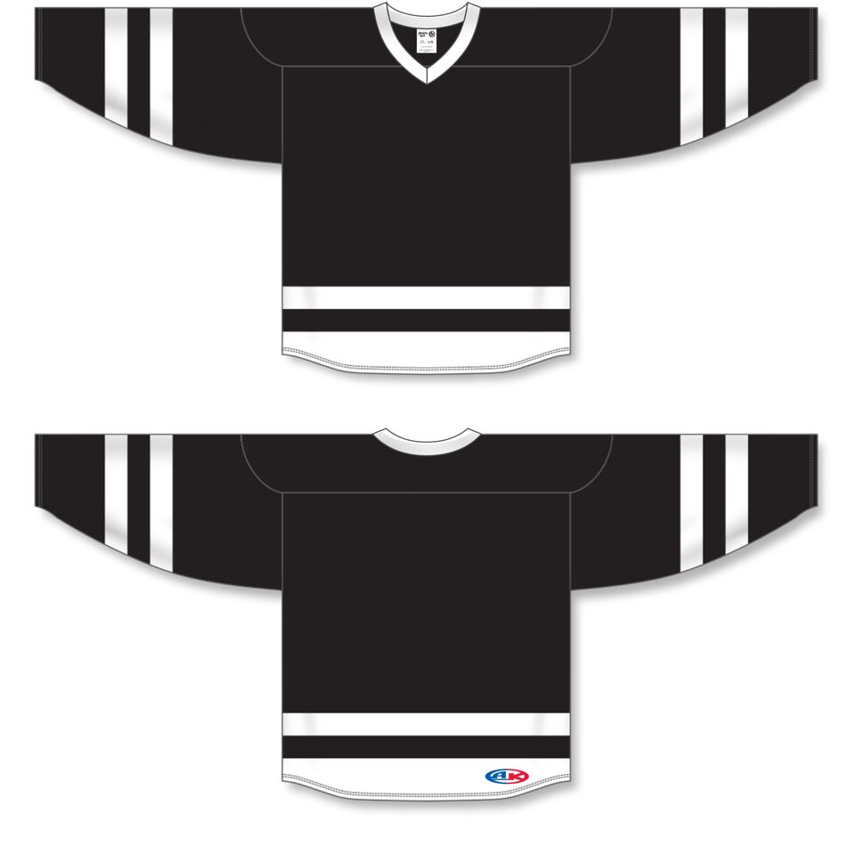 The H6500 League Hockey Jersey is made of midweight knit, a midweight polyester knitted fabric that is a lighter version of our AK-Knit fabric with more breathability. This league hockey jersey is black/white but many other colours are available on our website. It is available in youth & adult sizes.