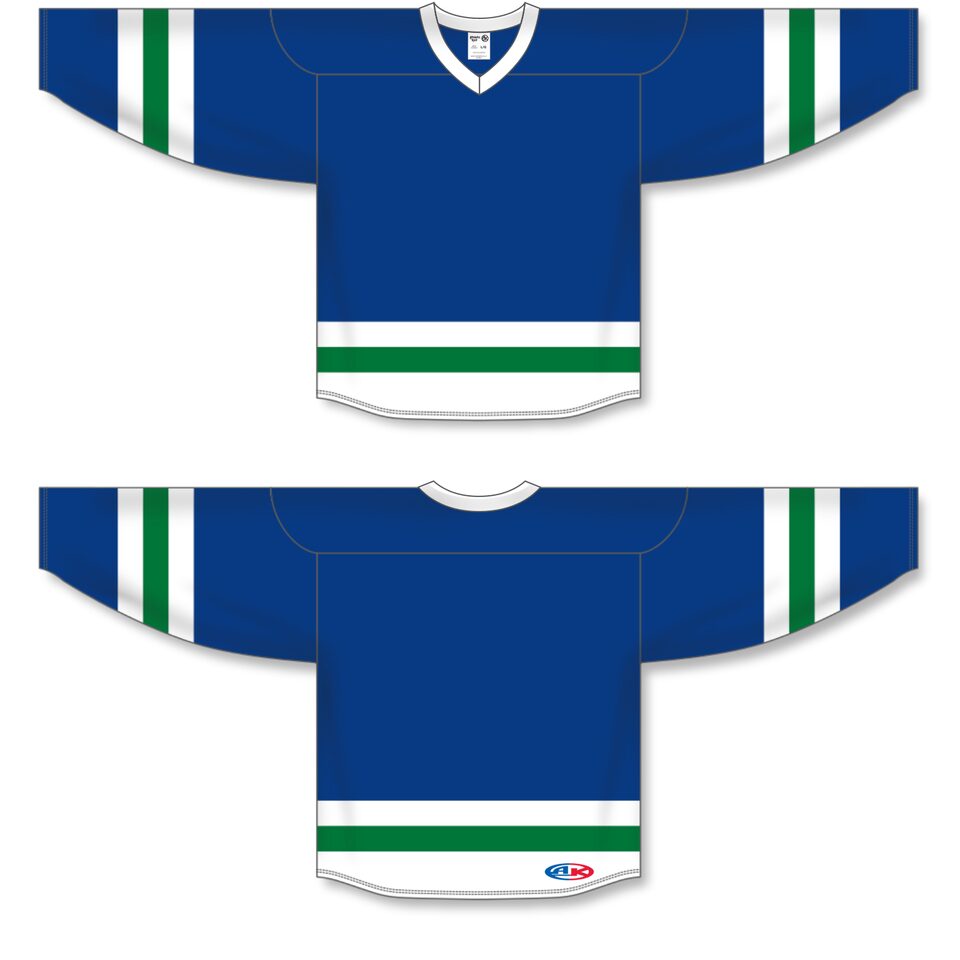 The H6500 League Hockey Jersey is made of midweight knit, a midweight polyester knitted fabric that is a lighter version of our AK-Knit fabric with more breathability. This league hockey jersey is royal/white/kelly but many other colours are available on our website. It is available in youth & adult sizes.