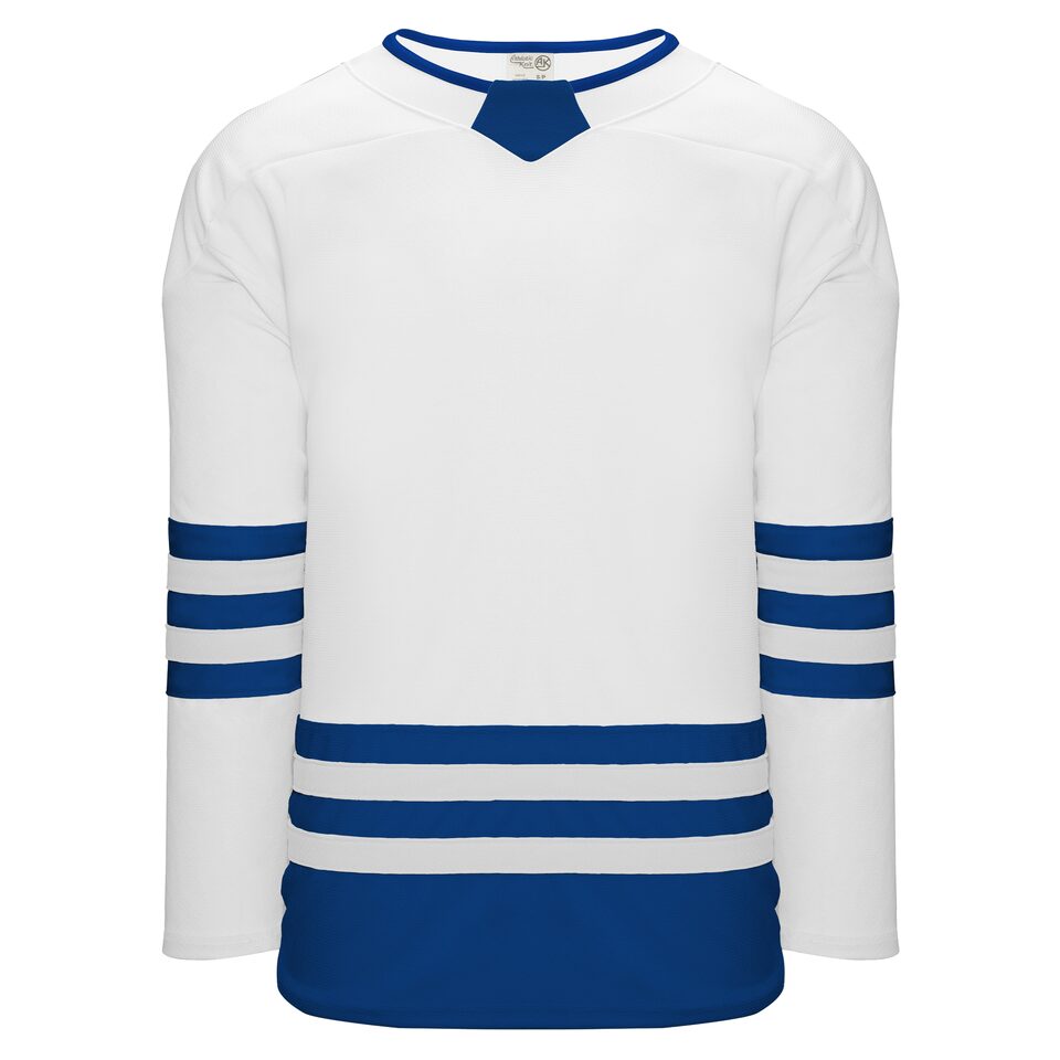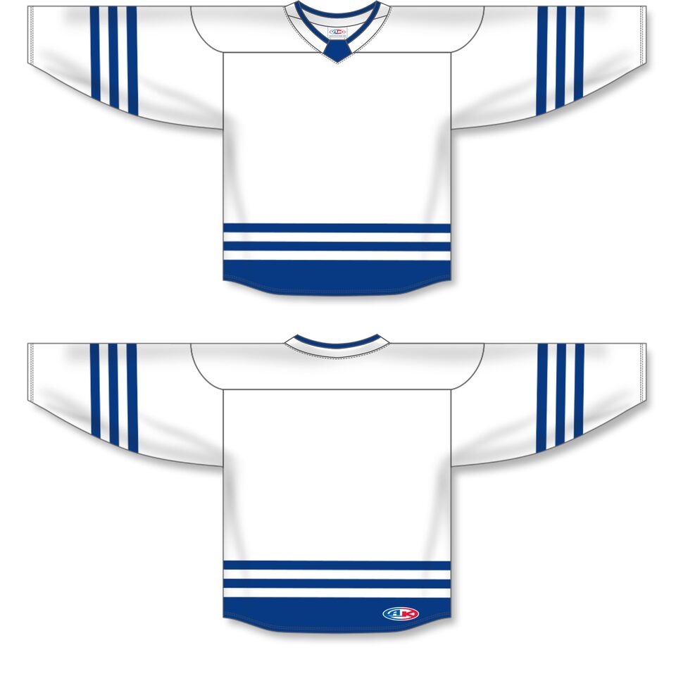 The H8000 Select Hockey Jersey is made of ak-knit, a heavyweight polyester knitted fabric that is extremely durable but still breathes pretty well. This select hockey jersey is white/royal but many other colours are available on our website. It is available in youth & adult sizes.