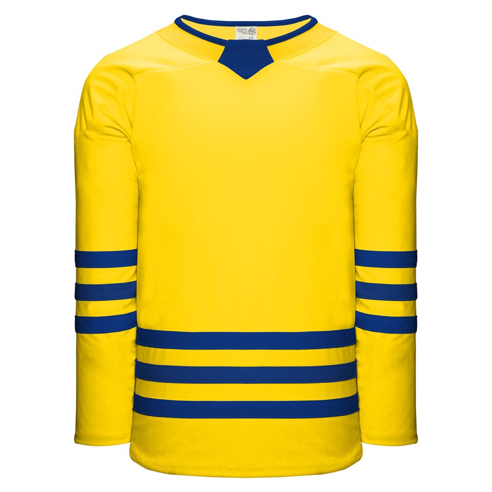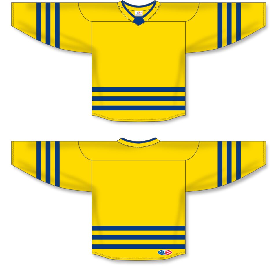 The H8000 Select Hockey Jersey is made of ak-knit, a heavyweight polyester knitted fabric that is extremely durable but still breathes pretty well. This select hockey jersey is maize/royal but many other colours are available on our website. It is available in youth & adult sizes.