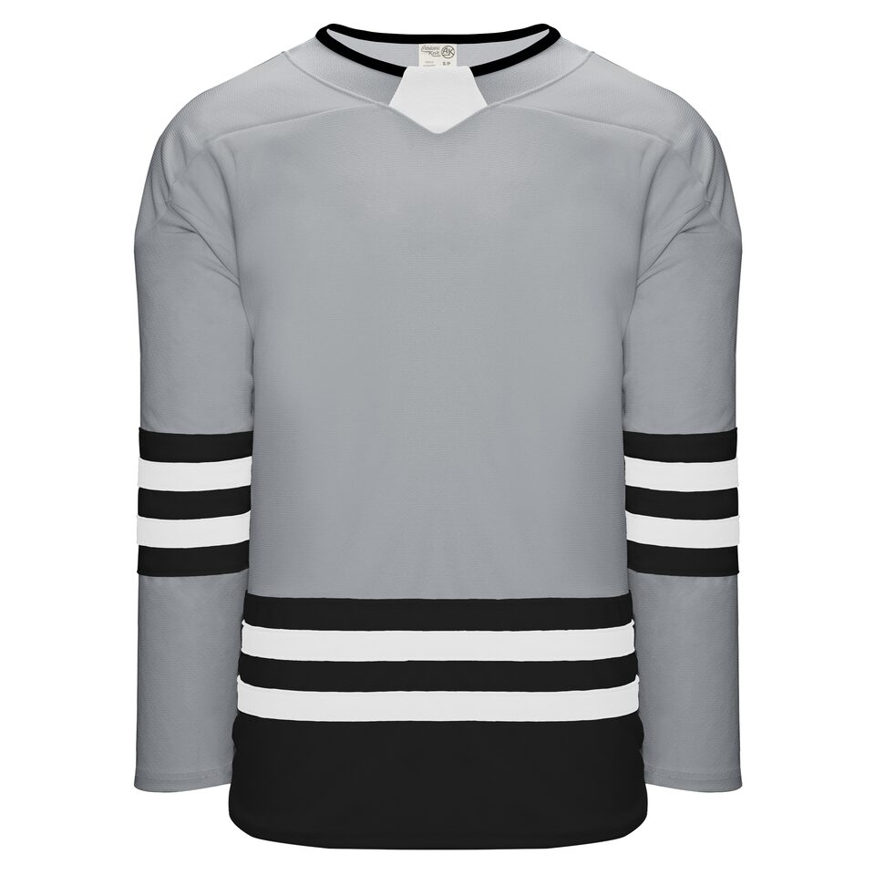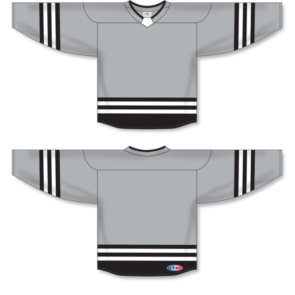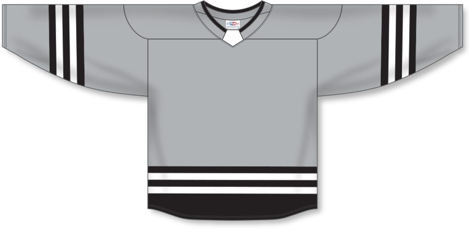 The H8000 Select Hockey Jersey is made of ak-knit, a heavyweight polyester knitted fabric that is extremely durable but still breathes pretty well. This select hockey jersey is grey/black/white but many other colours are available on our website. It is available in youth & adult sizes.