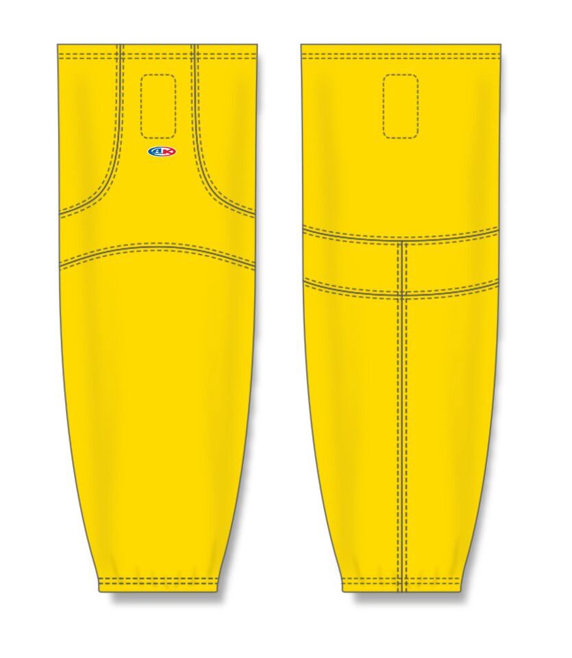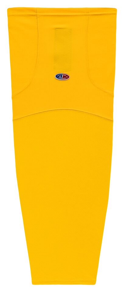 The HS1100 Lightweight Pro Hockey Socks is made of ak-knit, a polyester knitted fabric as well as velcro tabs. These lightweight pro hockey socks are maize but many other colours are available on our website. They are available in youth, intermediate & adult sizes.