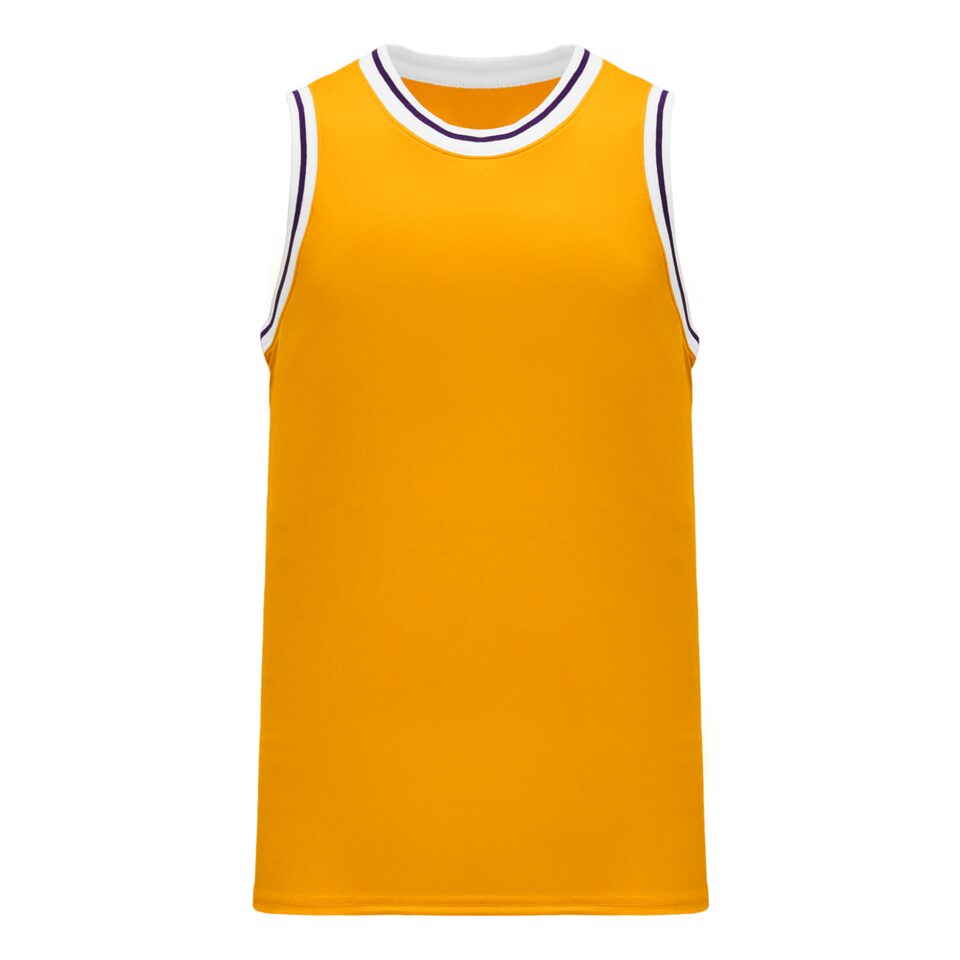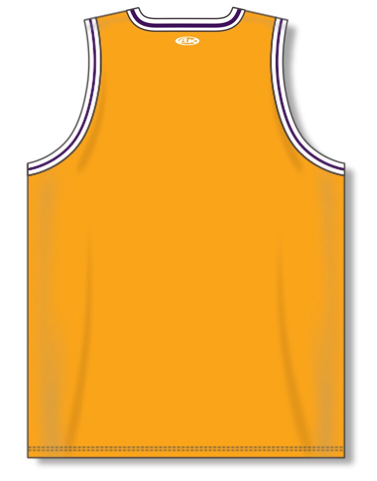 The B1710 Pro Basketball Jersey is made of moisture wicking dryflex, a polyester moisture wicking stretch fabric that is soft hand and very comfortable to wear. This pro basketball jersey is gold/white/purple but many other colours are available on our website. It is available in youth & men's sizes.