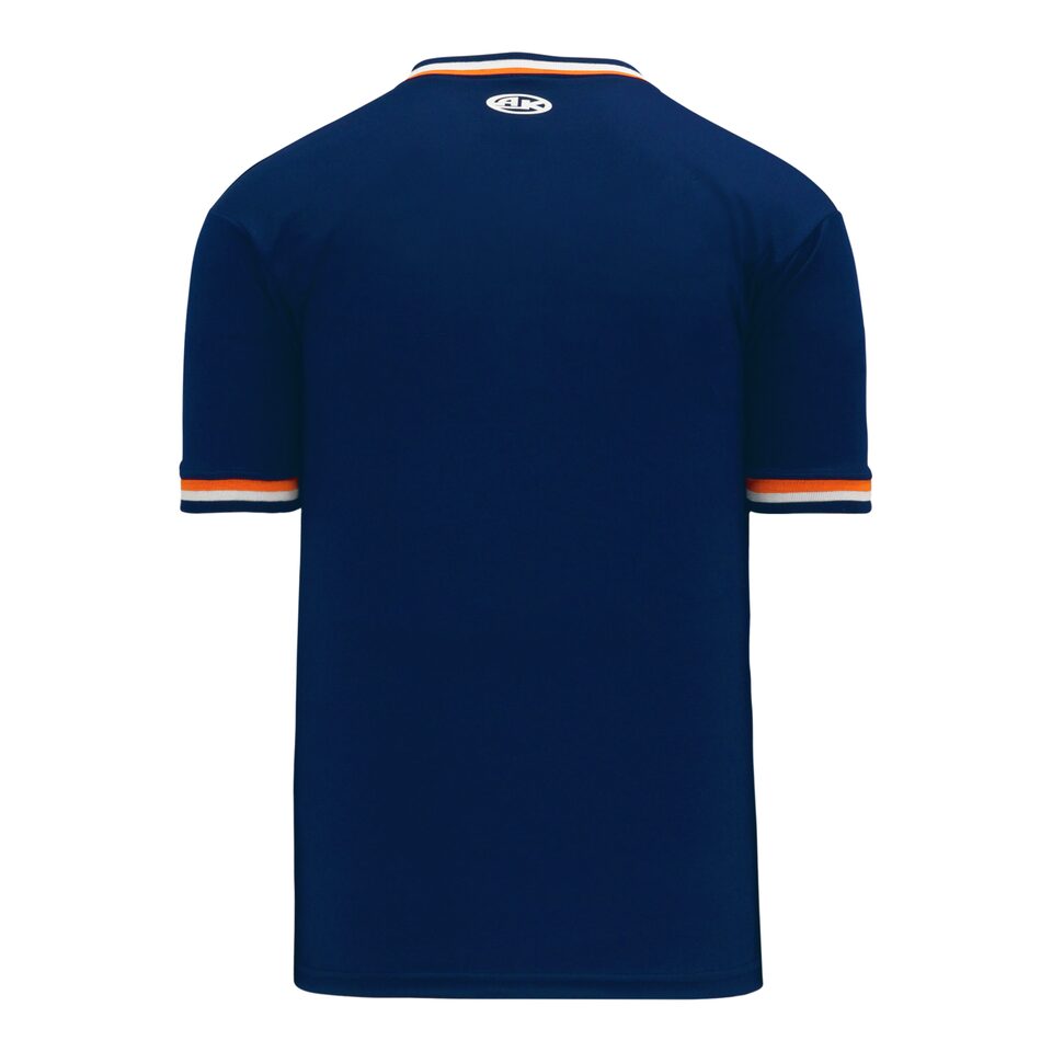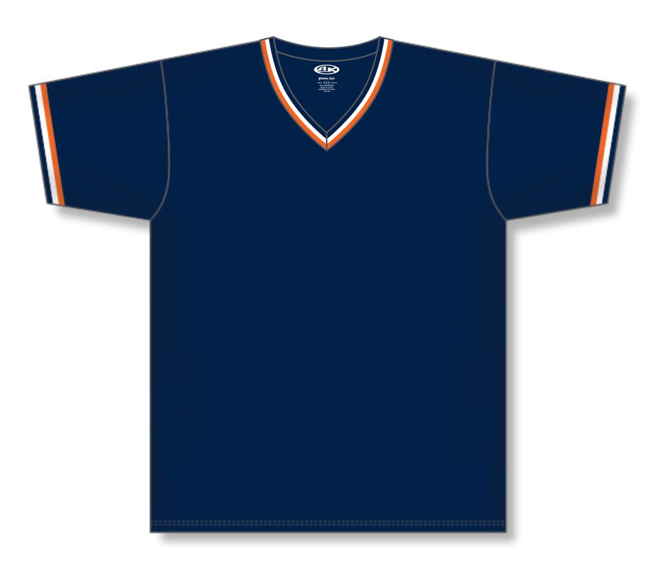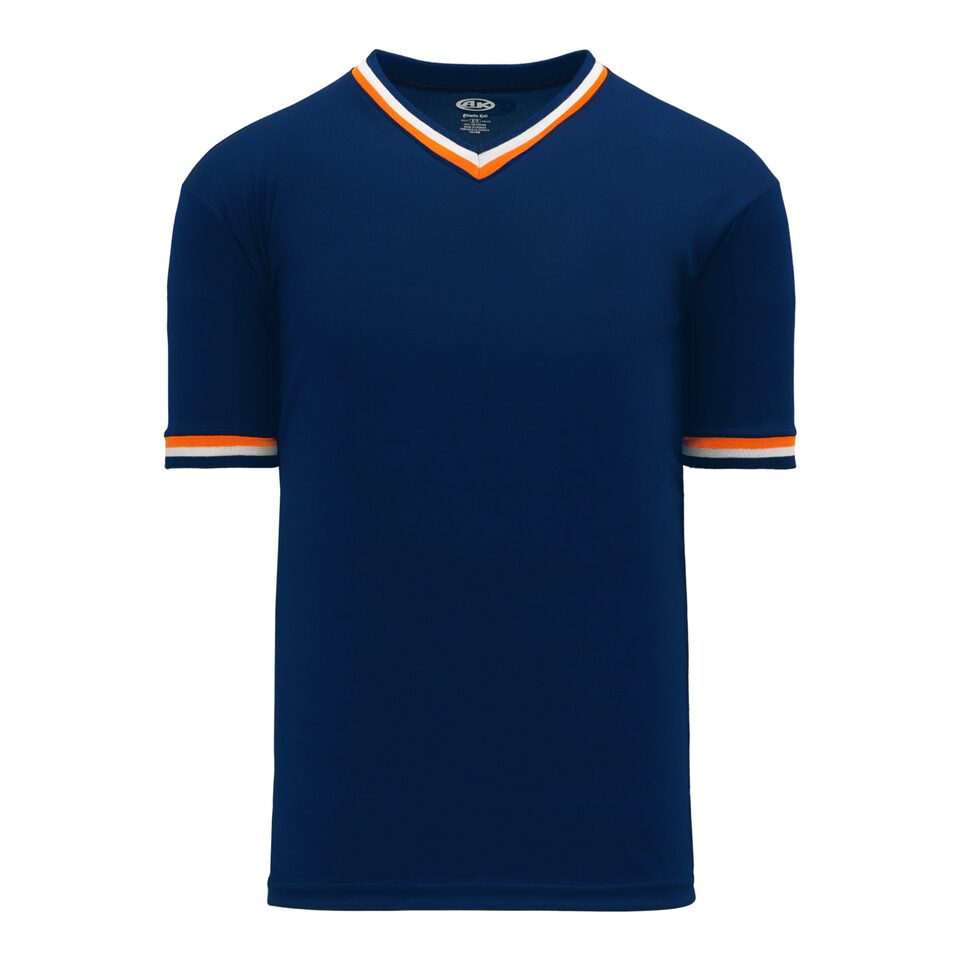 The BA1333 Pullover Baseball Jersey is made of moisture wicking dryflex, a polyester moisture wicking stretch fabric that is soft hand and very comfortable to wear. This pullover baseball jersey is navy/orange/white but many other colours are available on our website. It is available in youth & men's sizes.