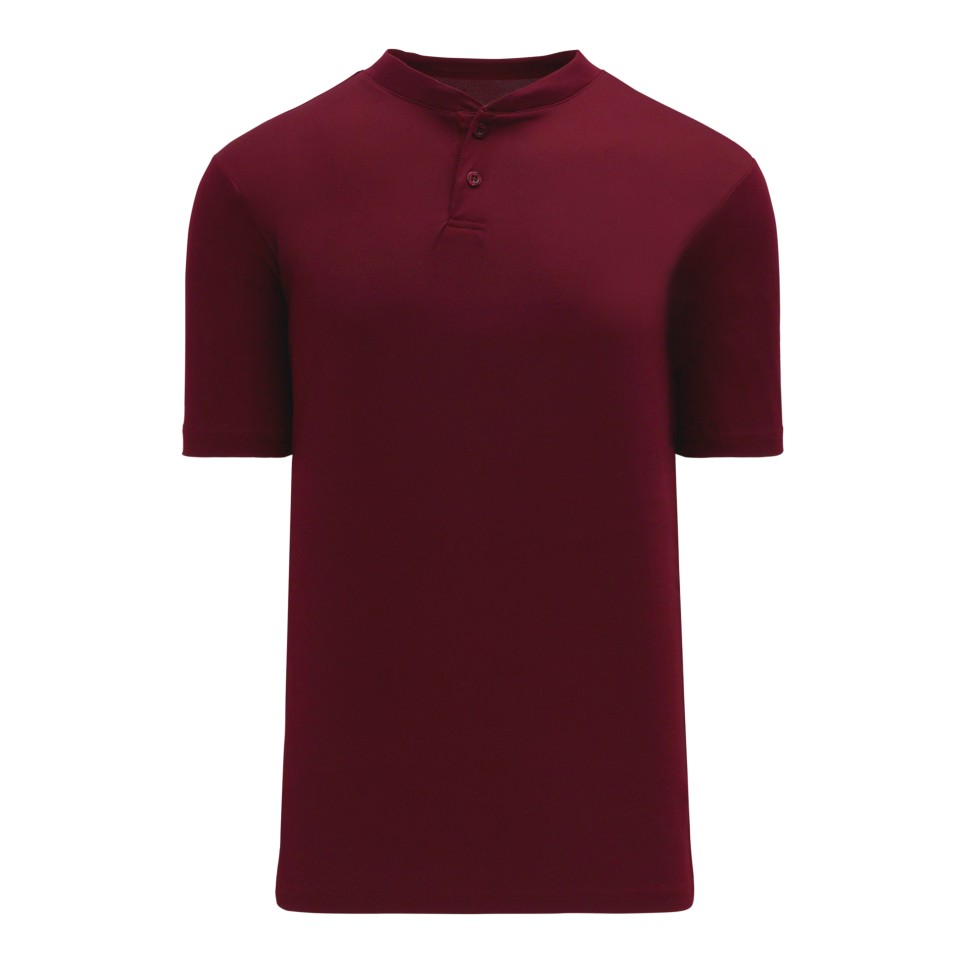 The BA1347 Two Button Baseball Jersey is made of moisture wicking dryflex, a polyester moisture wicking stretch fabric that is soft hand and very comfortable to wear. This two button baseball jersey is maroon but many other colours are available on our website. It is available in youth & adult sizes.