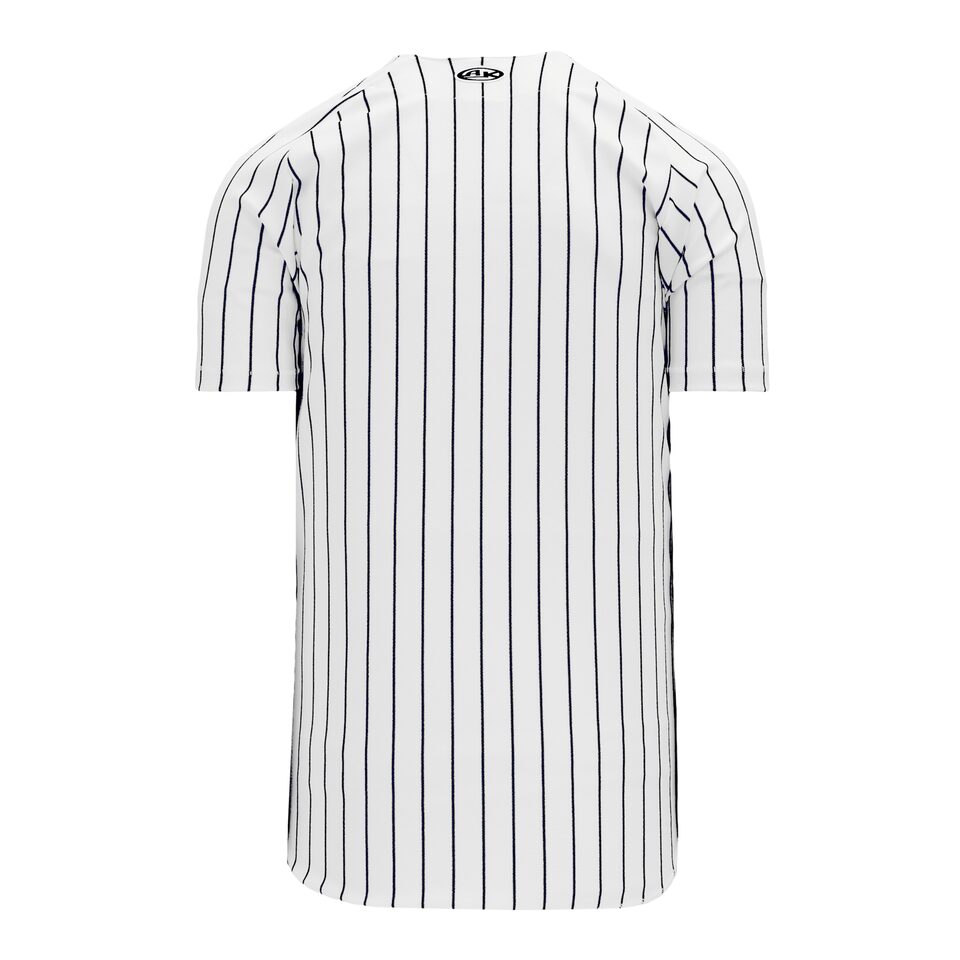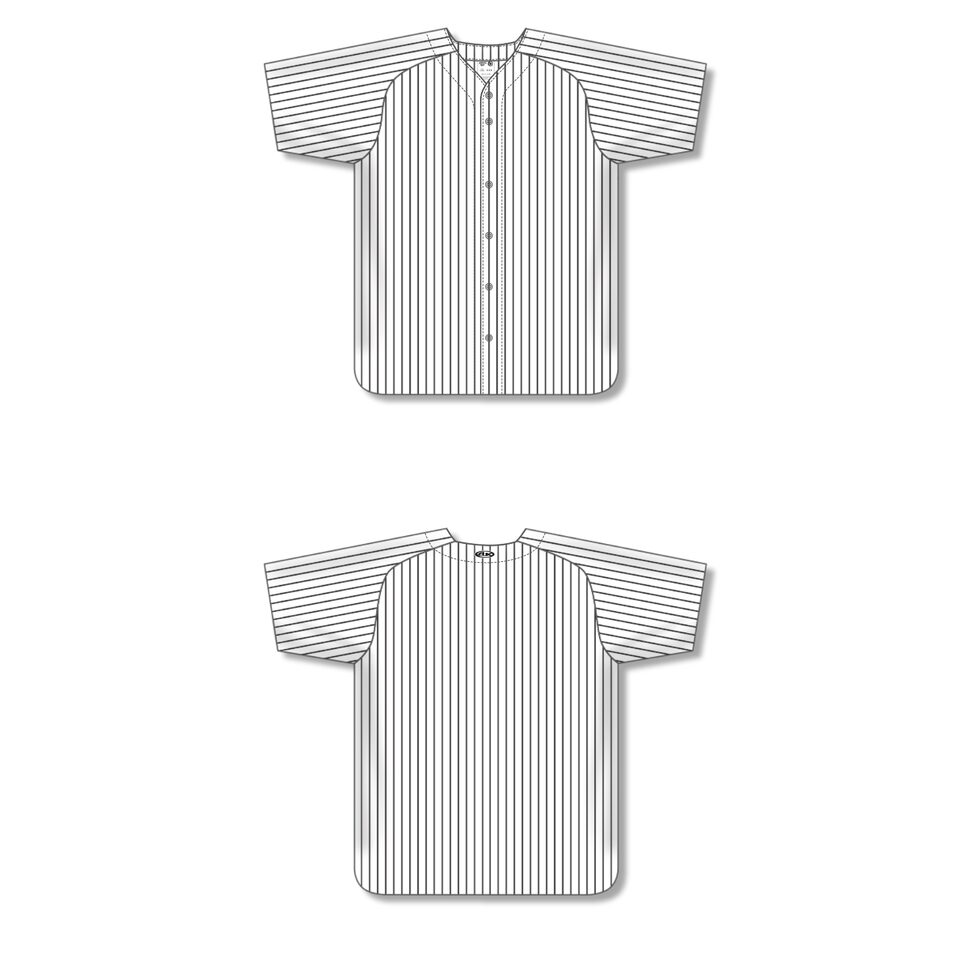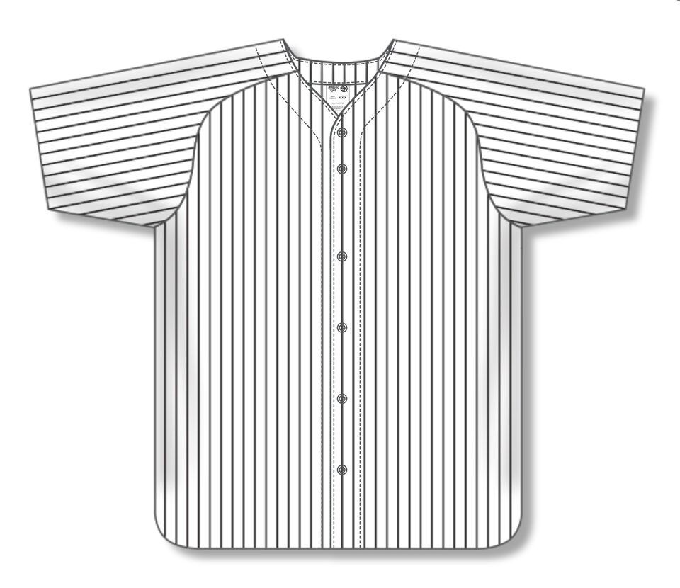 The BA524 Full Button Baseball Jersey is made of pinstripe warpknit, a heavyweight polyester fabric that is very strong, dense and durable but with limited stretch and breathability. This full button baseball jersey is white/black but many other colours are available on our website. It is available in men's sizes.