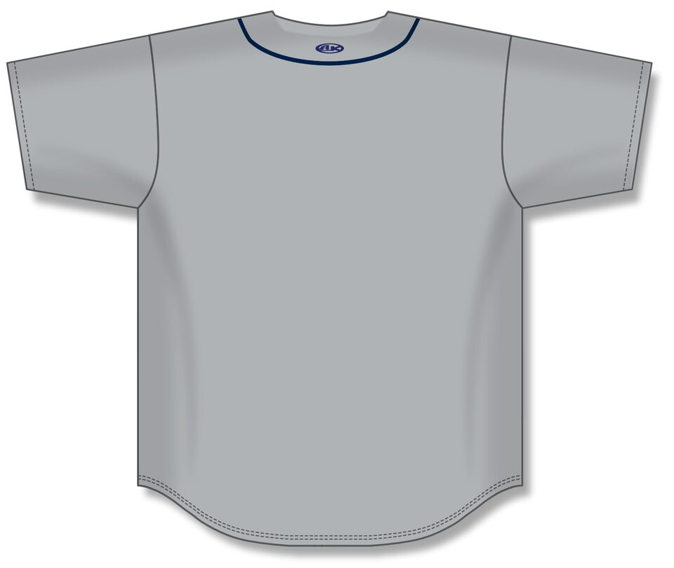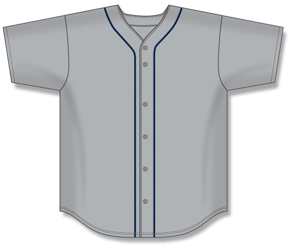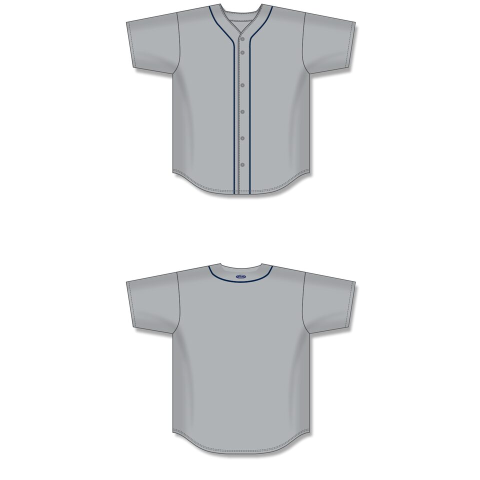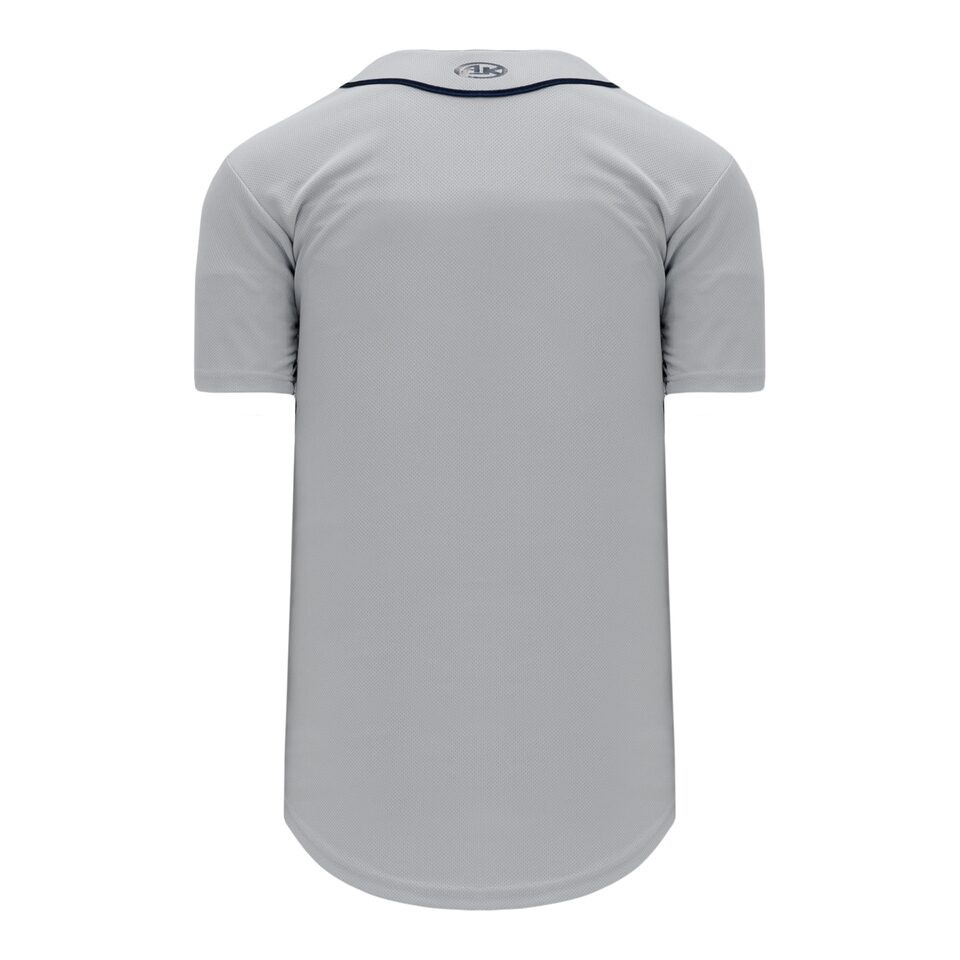 The BA5500 Full Button Baseball Jersey is made of moisture wicking proflex, a polyester moisture wicking knitted fabric constructed with aeration for breathability and mild stretch, it is very durable and comfortable to wear. This full button baseball jersey is grey/navy but many other colours are available on our website. It is available in youth & men's sizes.
