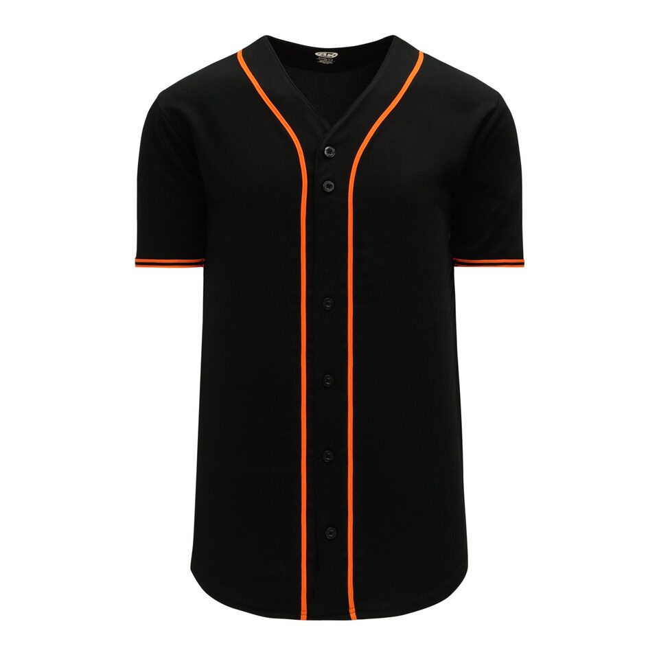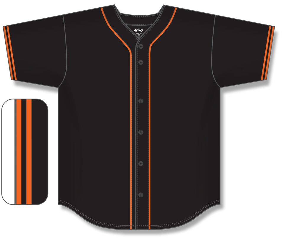 The BA5500 Full Button Baseball Jersey is made of moisture wicking proflex, a polyester moisture wicking knitted fabric constructed with aeration for breathability and mild stretch, it is very durable and comfortable to wear. This full button baseball jersey is black/orange but many other colours are available on our website. It is available in youth & men's sizes.