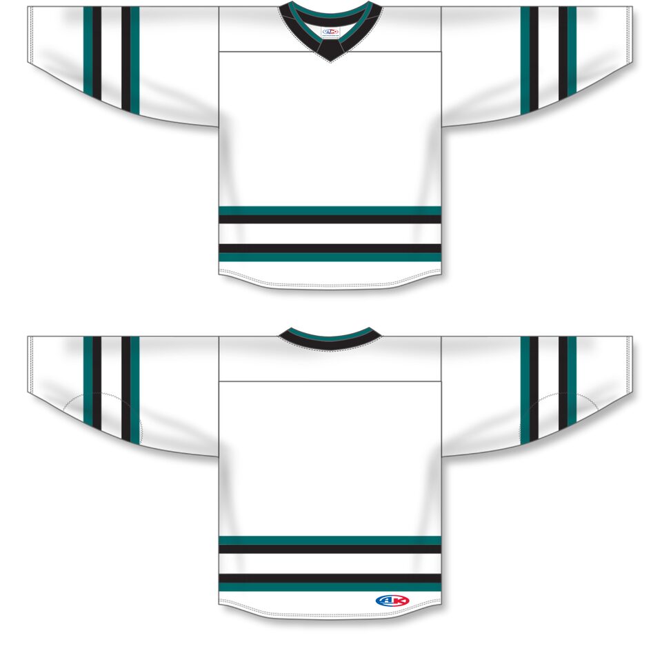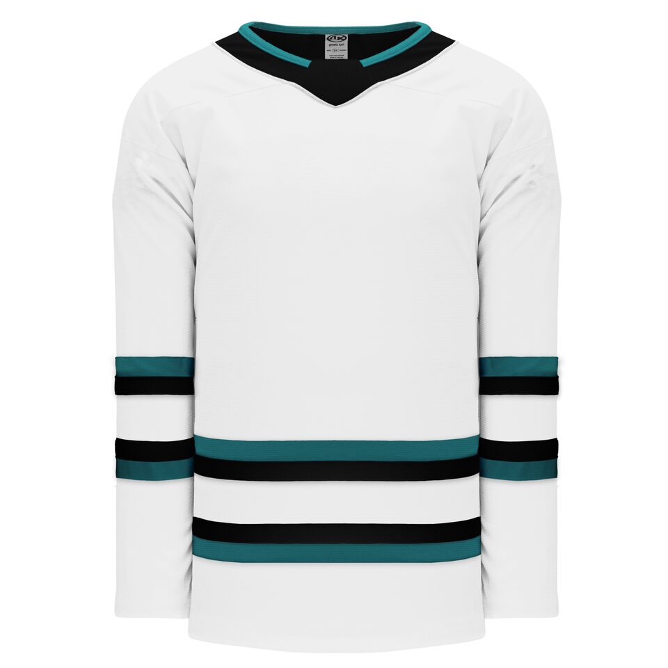 Le chandail de hockey pro H550B est fait de ak-knit, un polyester extrêmement résistant mais qui respire tout de même bien. Ce chandail de hockey pro est le 2022 san jose blanc mais plusieurs autres couleurs sont disponibles sur notre site web. Il est disponible dans les grandeurs junior & adulte