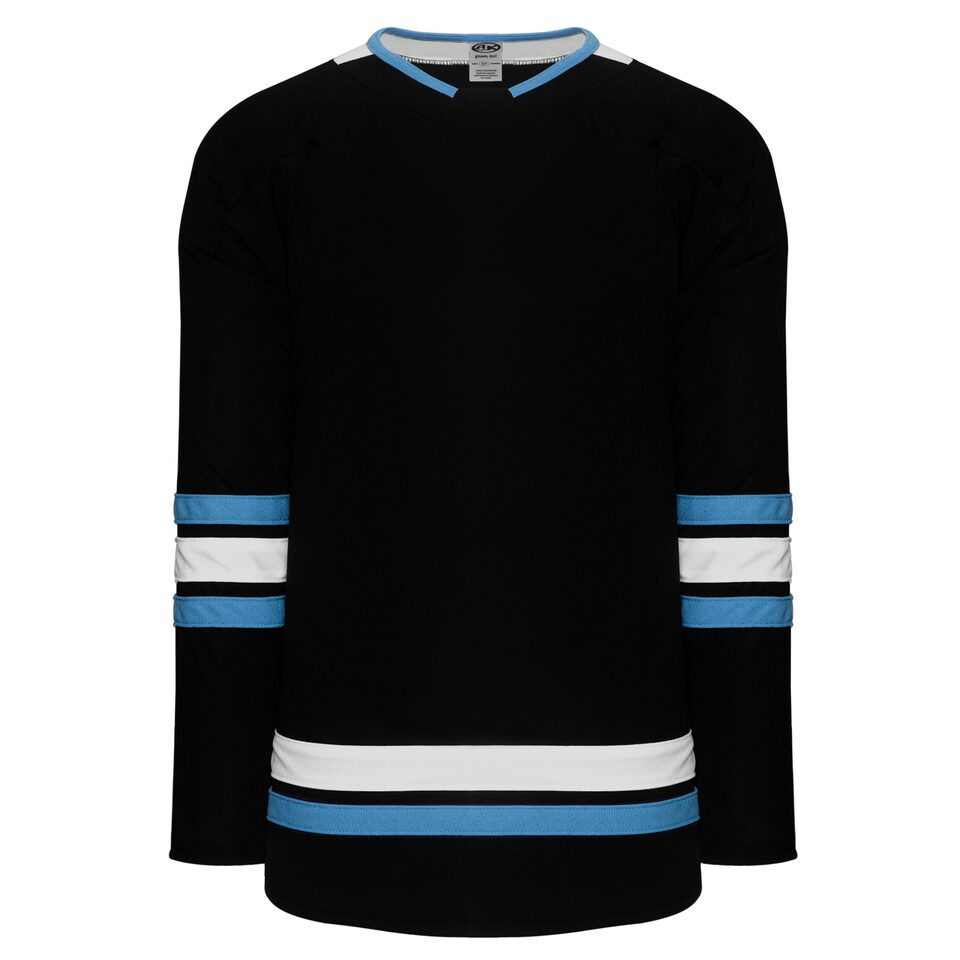 Le chandail de hockey pro H550B est fait de ak-knit, un polyester extrêmement résistant mais qui respire tout de même bien. Ce chandail de hockey pro est le 2024 utah noir mais plusieurs autres couleurs sont disponibles sur notre site web. Il est disponible dans les grandeurs junior & adulte