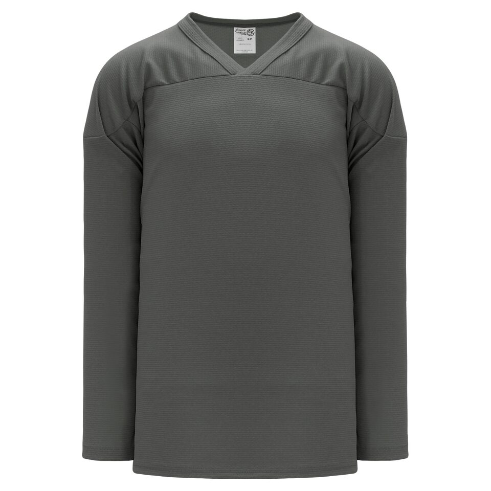 Le chandail de hockey de pratique H6000 est fait de polyester moyen, un polyester de poids moyen soit une version plus légère de notre tissu AK-Knit. Ce chandail de hockey de pratique est le graphite mais plusieurs autres couleurs sont disponibles sur notre site web. Il est disponible dans les grandeurs junior & homme