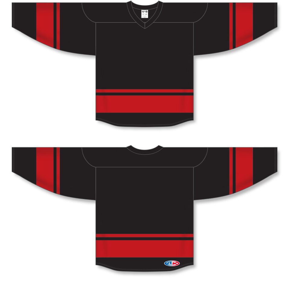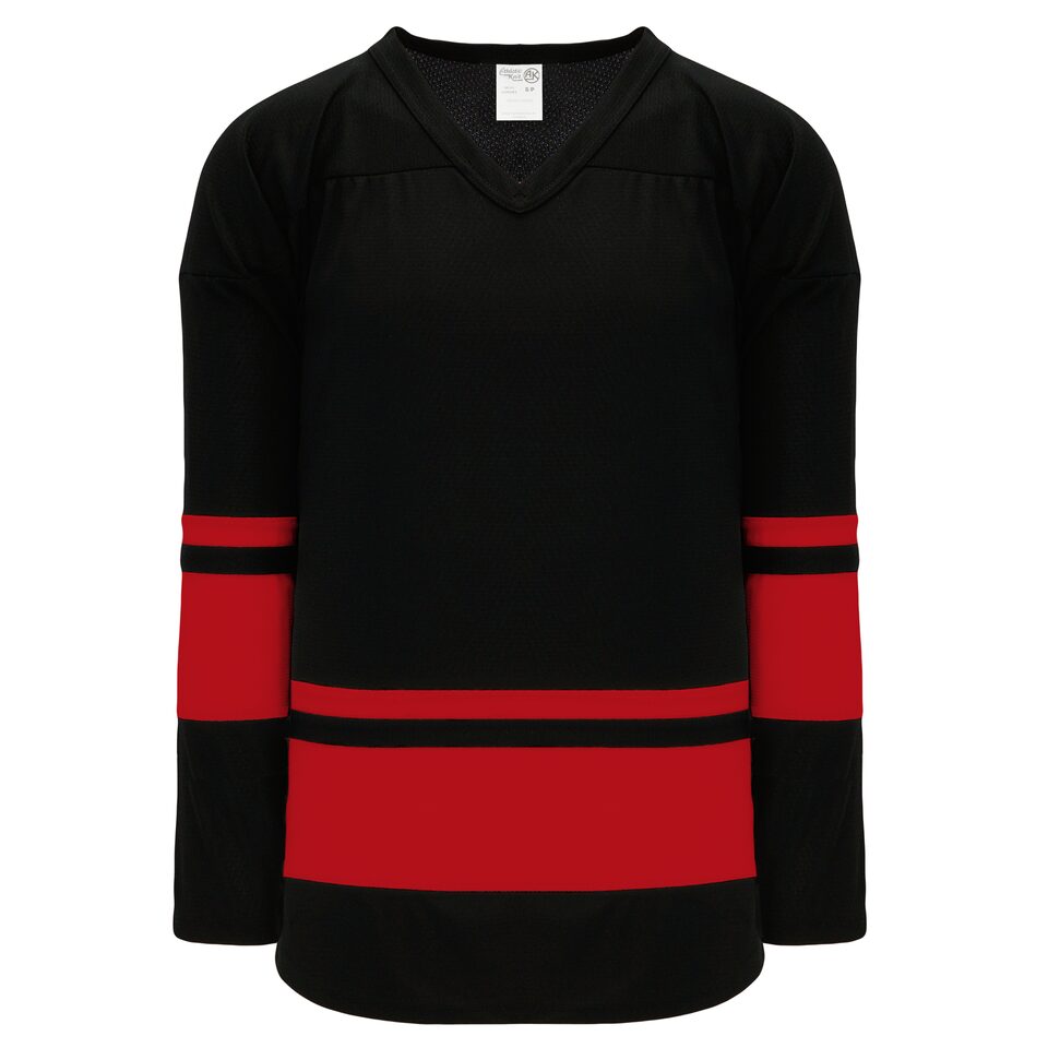 Le chandail de hockey "ligue" H6400 est fait de polyester moyen, un polyester de poids moyen soit une version plus légère de notre tissu AK-Knit. Ce chandail de hockey "ligue" est le noir/rouge mais plusieurs autres couleurs sont disponibles sur notre site web. Il est disponible dans les grandeurs junior & adulte