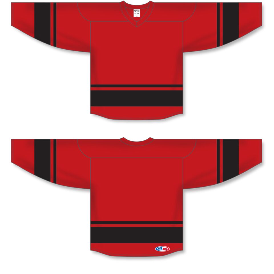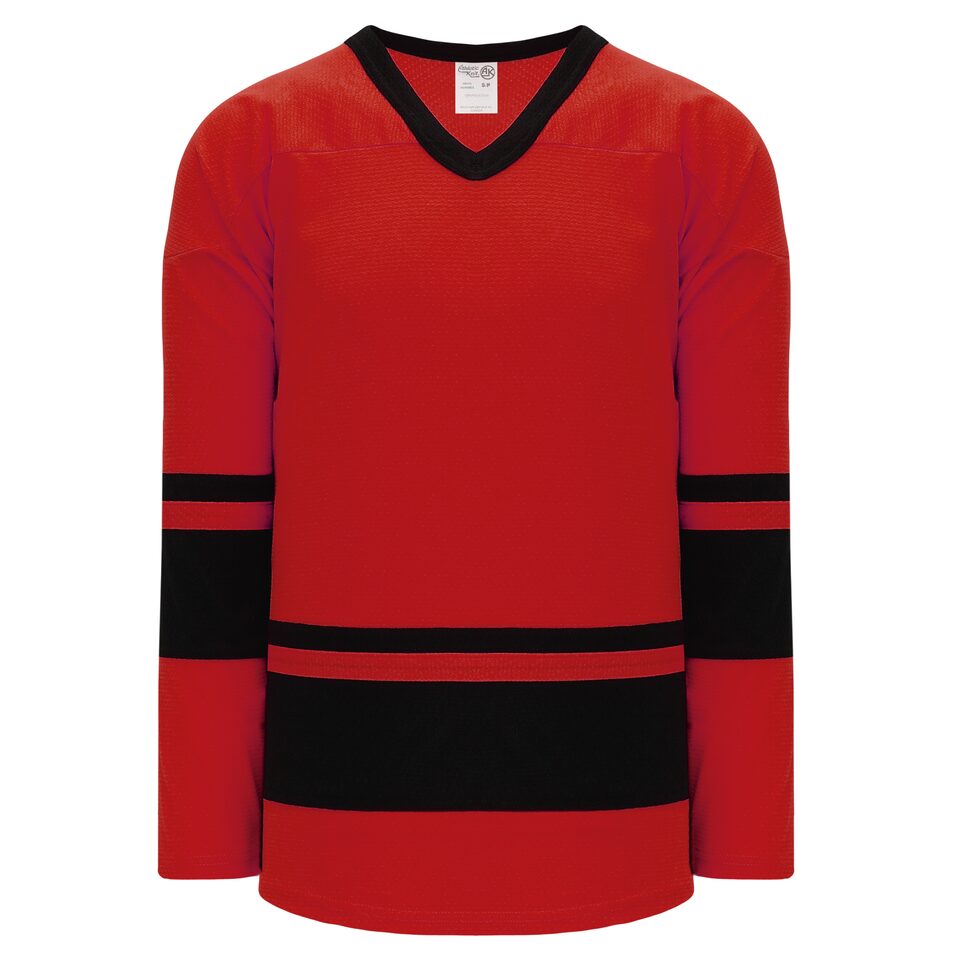 Le chandail de hockey "ligue" H6400 est fait de polyester moyen, un polyester de poids moyen soit une version plus légère de notre tissu AK-Knit. Ce chandail de hockey "ligue" est le rouge/noir mais plusieurs autres couleurs sont disponibles sur notre site web. Il est disponible dans les grandeurs junior & adulte