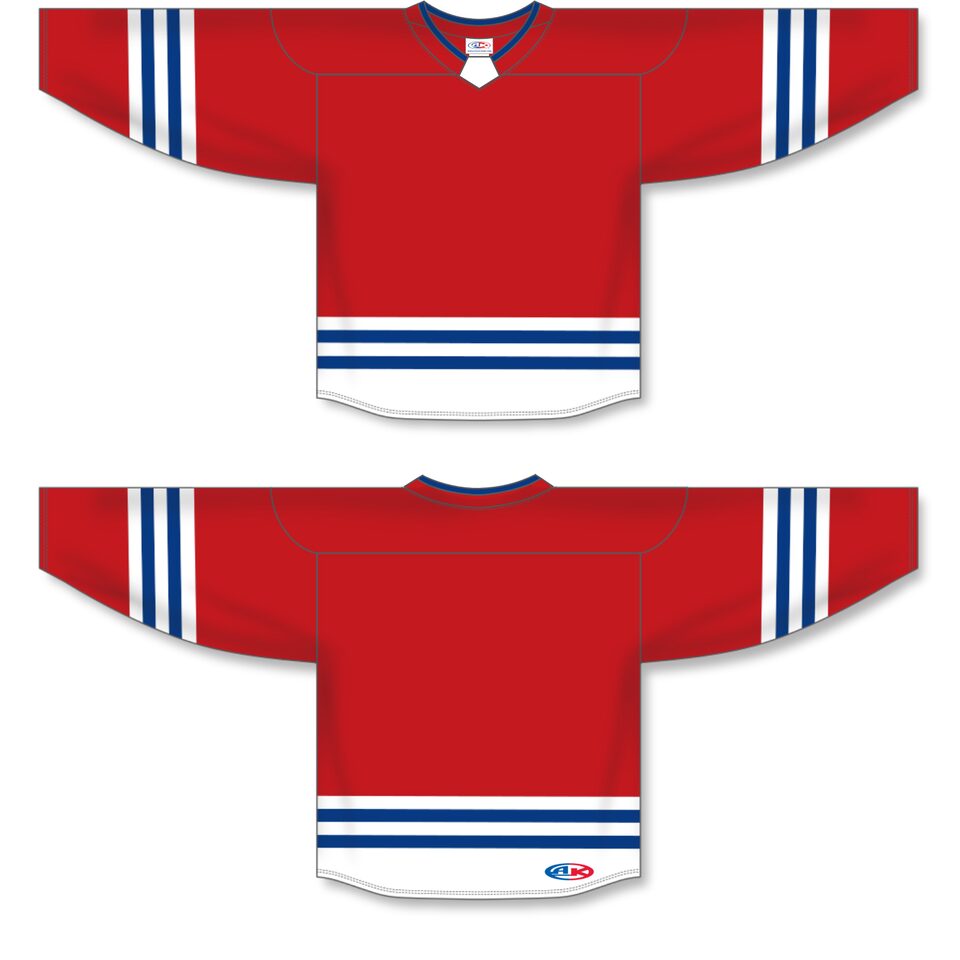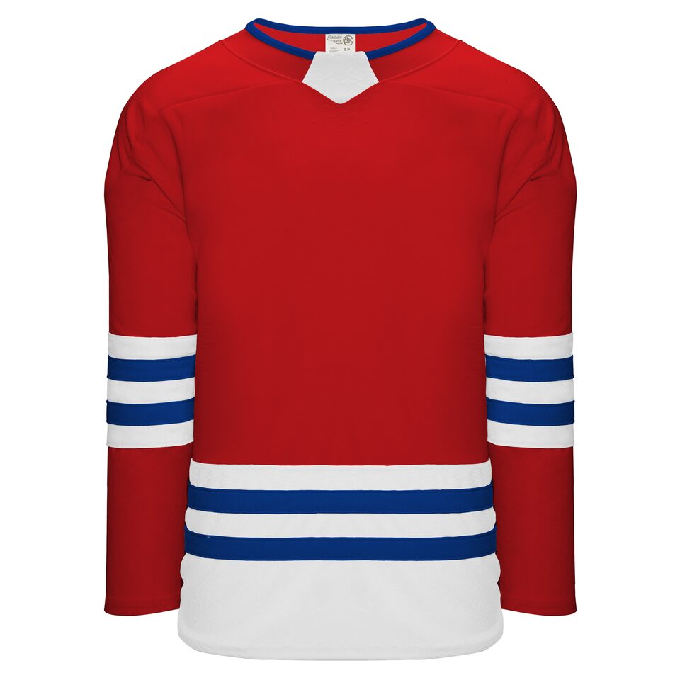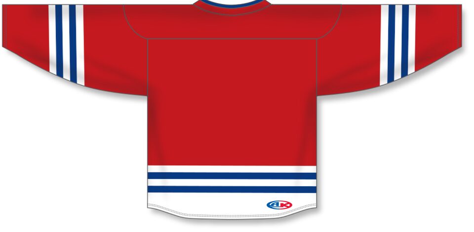 Le chandail de hockey "sélection" H8000 est fait de ak-knit, un polyester extrêmement résistant mais qui respire tout de même bien. Ce chandail de hockey "sélection" est le rouge/blanc/royal mais plusieurs autres couleurs sont disponibles sur notre site web. Il est disponible dans les grandeurs junior & adulte