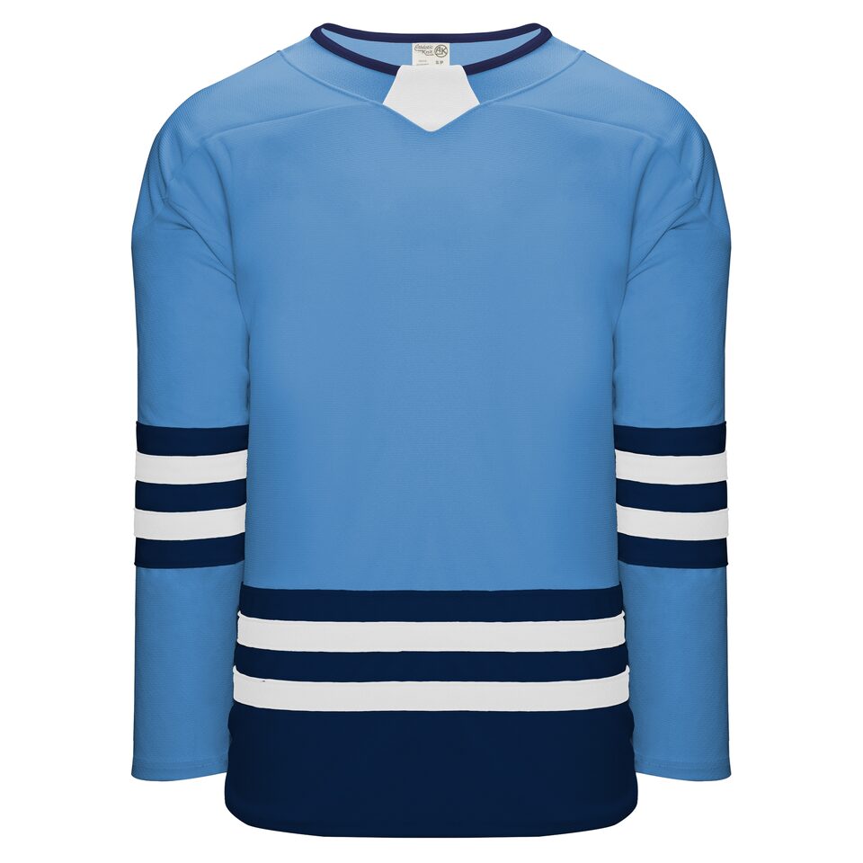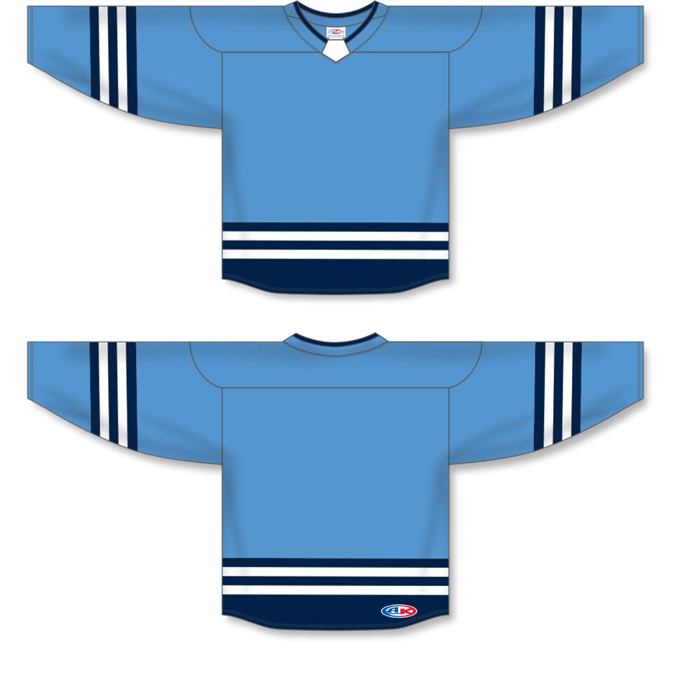 Le chandail de hockey "sélection" H8000 est fait de ak-knit, un polyester extrêmement résistant mais qui respire tout de même bien. Ce chandail de hockey "sélection" est le bleu ciel/marine/blanc mais plusieurs autres couleurs sont disponibles sur notre site web. Il est disponible dans les grandeurs junior & adulte