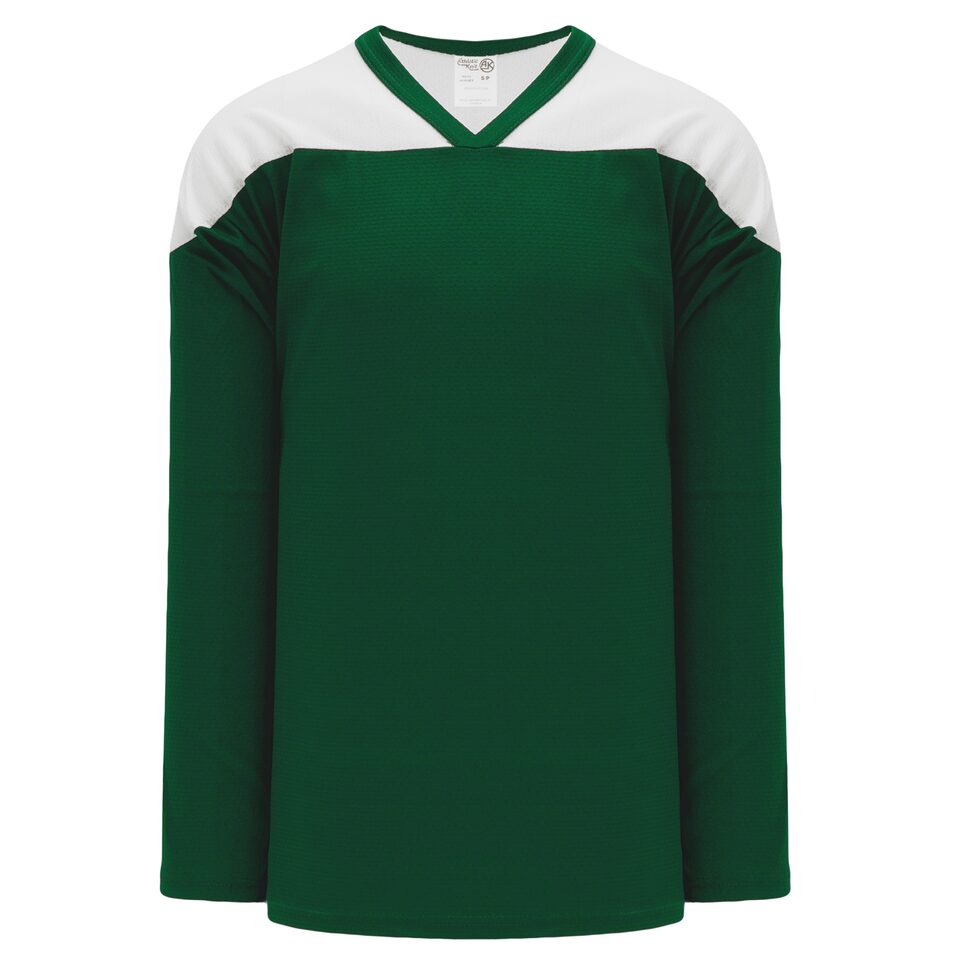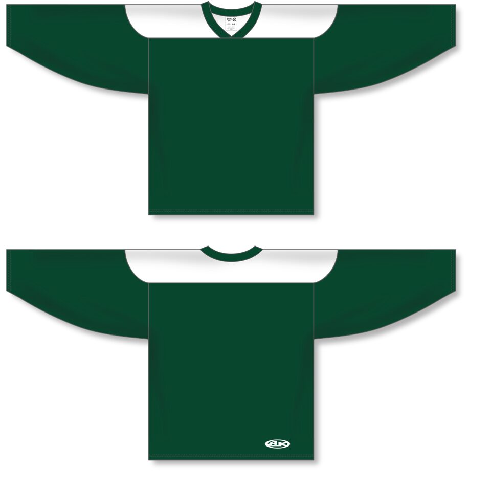 Le chandail de hockey "ligue" H6100 est fait de polyester moyen, un polyester de poids moyen soit une version plus légère de notre tissu AK-Knit. Ce chandail de hockey "ligue" est le vert foncé/blanc mais plusieurs autres couleurs sont disponibles sur notre site web. Il est disponible dans les grandeurs junior & adulte