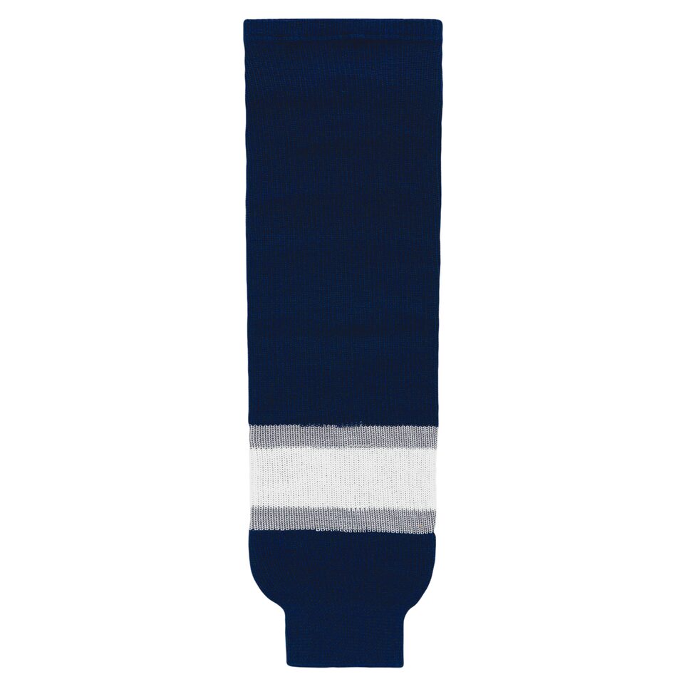 Les bas tricotés de hockey lignés HS630 sont faits de matériel tricoté, pour des bas de hockey résistants. Ces bas tricotés de hockey lignés sont les 2002 edmonton 3e marine mais plusieurs autres couleurs sont disponibles sur notre site web. Ils sont disponibles dans les grandeurs junior, intermédiaire & adulte