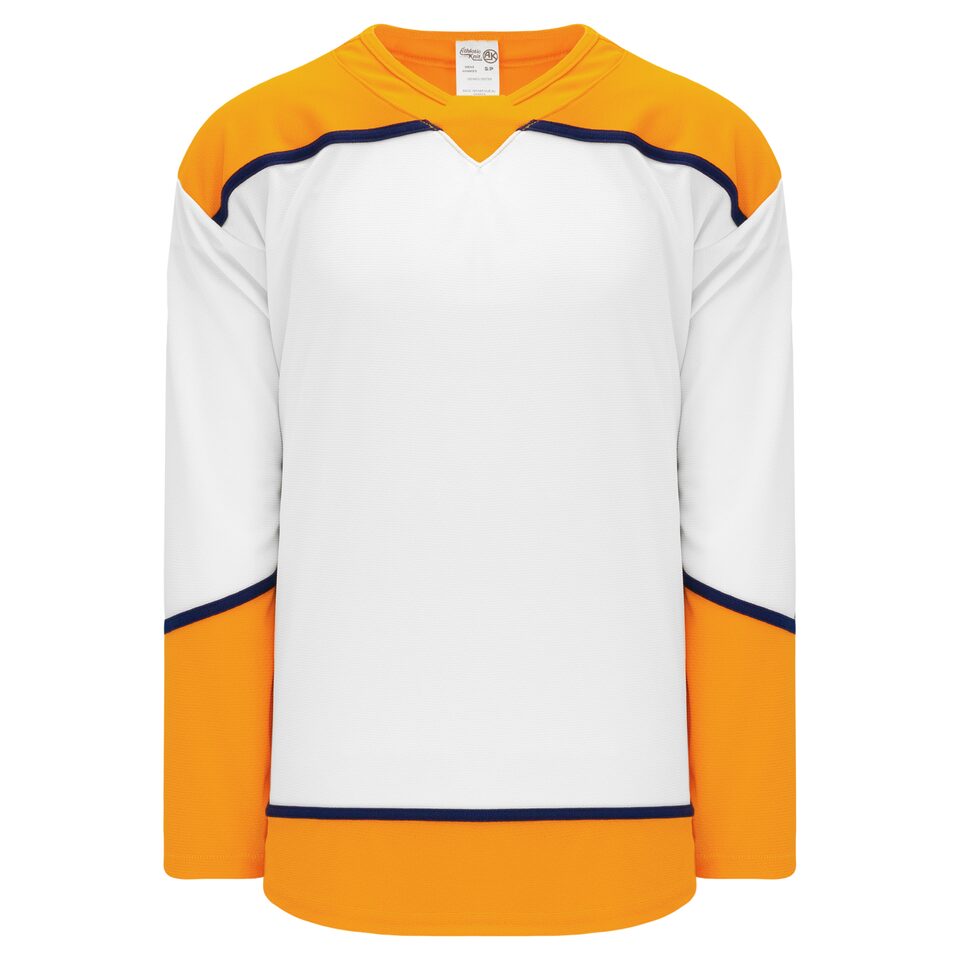 The H550B Pro Hockey Jersey is made of ak-knit, a heavyweight polyester knitted fabric that is extremely durable but still breathes pretty well. This pro hockey jersey is 2017 nashville white but many other colours are available on our website. It is available in youth & adult sizes.