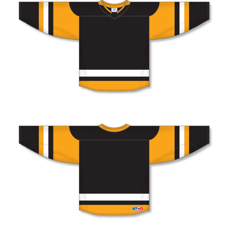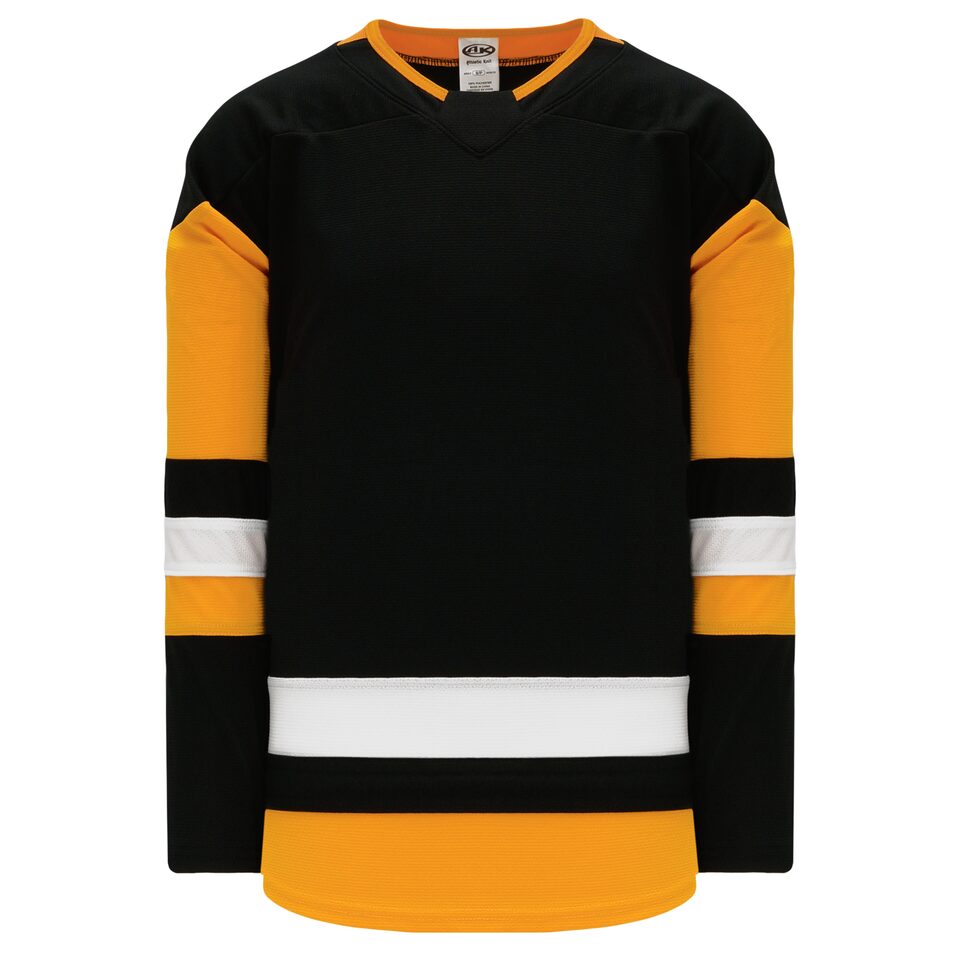 The H550B Pro Hockey Jersey is made of ak-knit, a heavyweight polyester knitted fabric that is extremely durable but still breathes pretty well. This pro hockey jersey is 2017 pittsburgh black but many other colours are available on our website. It is available in youth & adult sizes.