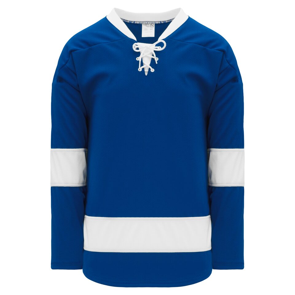 The H550B Pro Hockey Jersey is made of ak-knit, a heavyweight polyester knitted fabric that is extremely durable but still breathes pretty well. This pro hockey jersey is 2011 tampa bay royal but many other colours are available on our website. It is available in youth & adult sizes.
