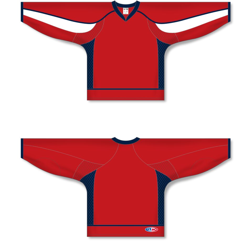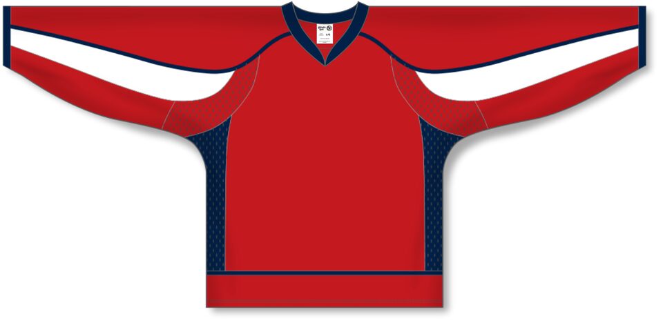 The H550D Pro Hockey Jersey is made of ak-knit, a heavyweight polyester knitted fabric that is extremely durable but still breathes pretty well. This pro hockey jersey is 2008 washington red but many other colours are available on our website. It is available in youth & adult sizes.