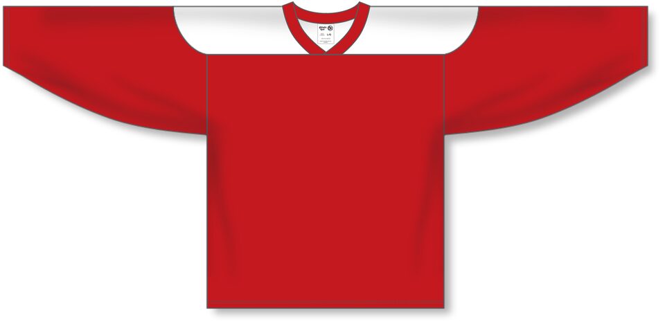The H6100 League Hockey Jersey is made of midweight knit, a midweight polyester knitted fabric that is a lighter version of our AK-Knit fabric with more breathability. This league hockey jersey is red/white but many other colours are available on our website. It is available in youth & adult sizes.