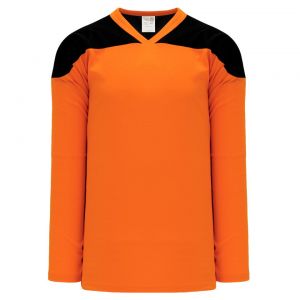 The H6100 League Hockey Jersey is made of midweight knit, a midweight polyester knitted fabric that is a lighter version of our AK-Knit fabric with more breathability. This league hockey jersey is orange/black but many other colours are available on our website. It is available in youth & adult sizes.