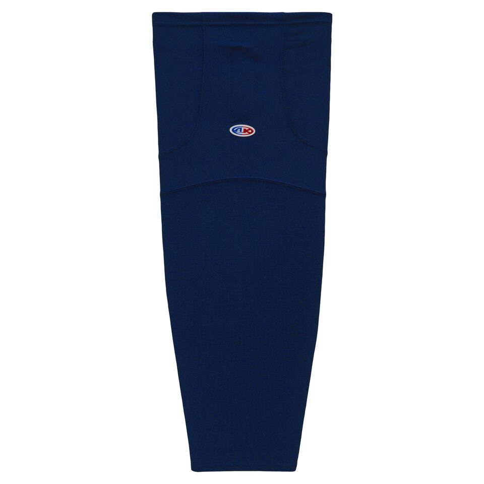 The HS1100 Lightweight Pro Hockey Socks is made of ak-knit, a polyester knitted fabric as well as velcro tabs. These lightweight pro hockey socks are navy but many other colours are available on our website. They are available in youth, intermediate & adult sizes.