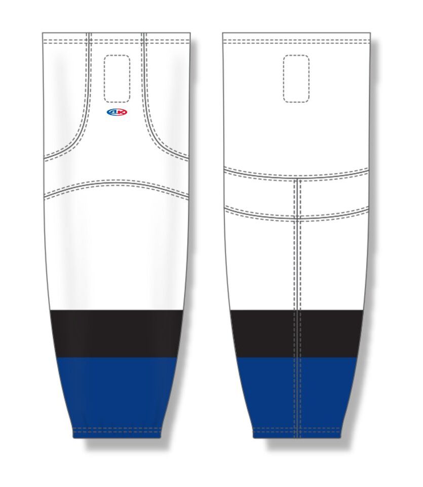 The HS2100 Lightweight Pro Hockey Socks is made of ak-knit, a polyester knitted fabric as well as velcro tabs. These lightweight pro hockey socks are tampa bay white but many other colours are available on our website. They are available in youth, intermediate & adult sizes.
