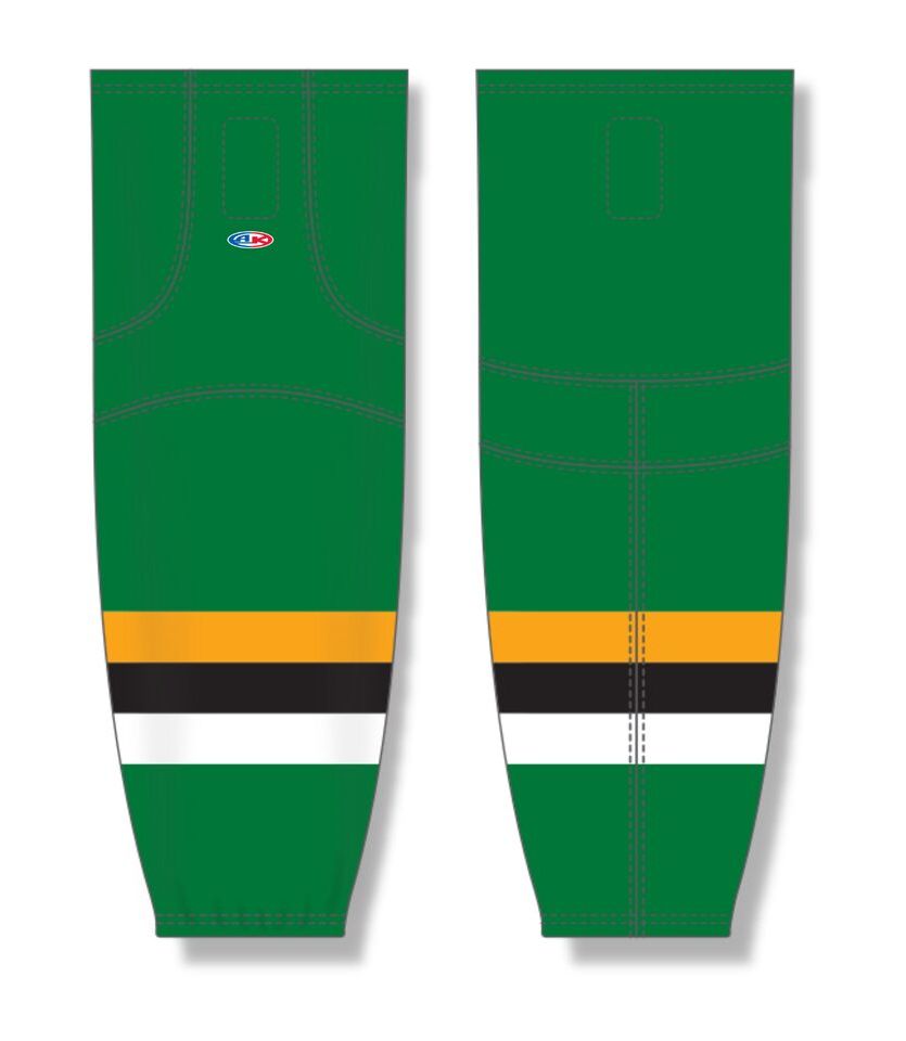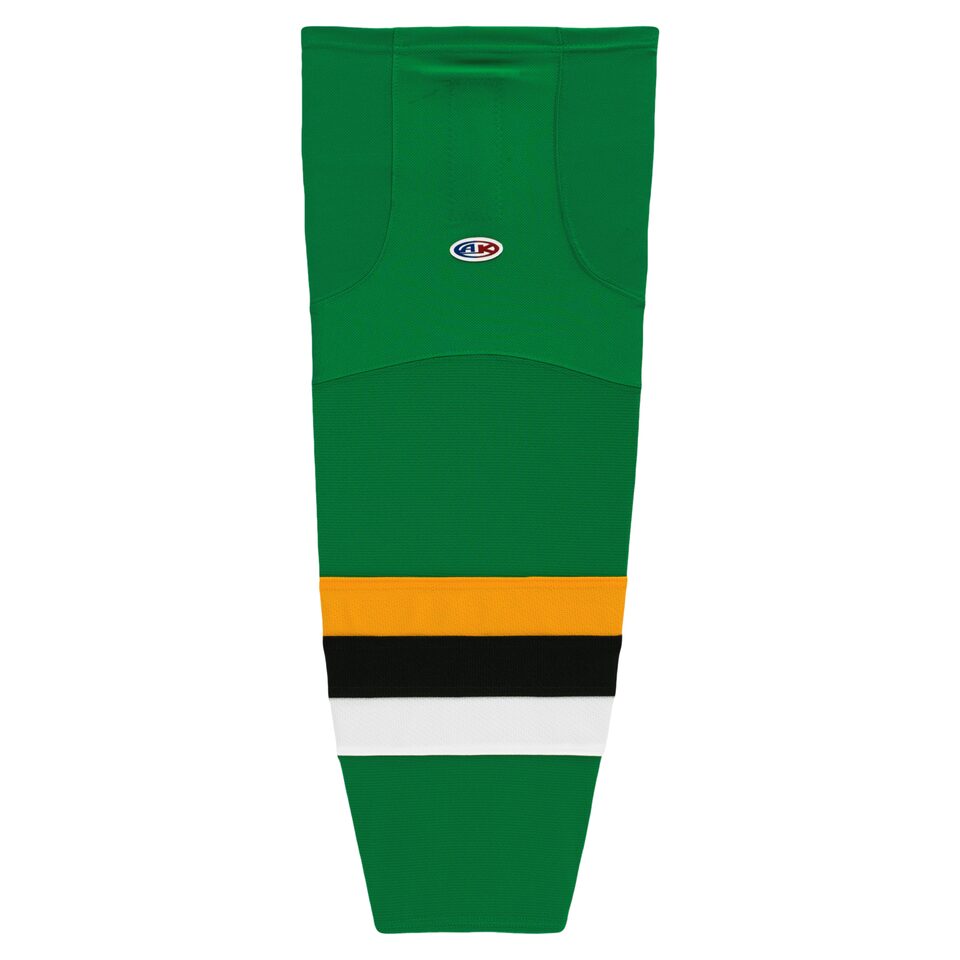 The HS2100 Lightweight Pro Hockey Socks is made of ak-knit, a polyester knitted fabric as well as velcro tabs. These lightweight pro hockey socks are minnesota kelly with black stripe but many other colours are available on our website. They are available in youth, intermediate & adult sizes.