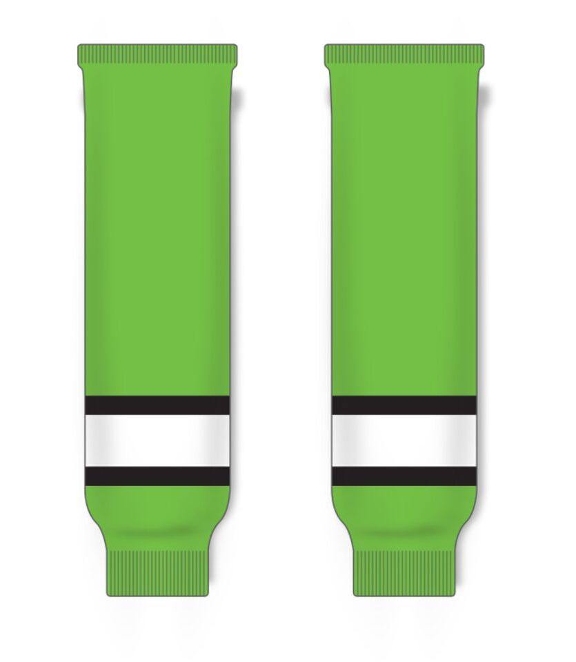 The HS630 Knitted Striped Hockey Socks is made of knitted fabric, for durable hockey socks. These knitted striped hockey socks are lime/black/white but many other colours are available on our website. They are available in youth, intermediate & adult sizes.