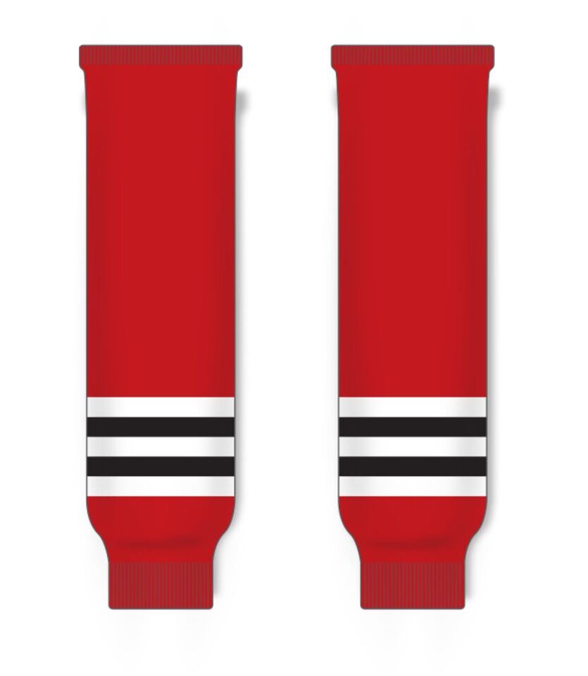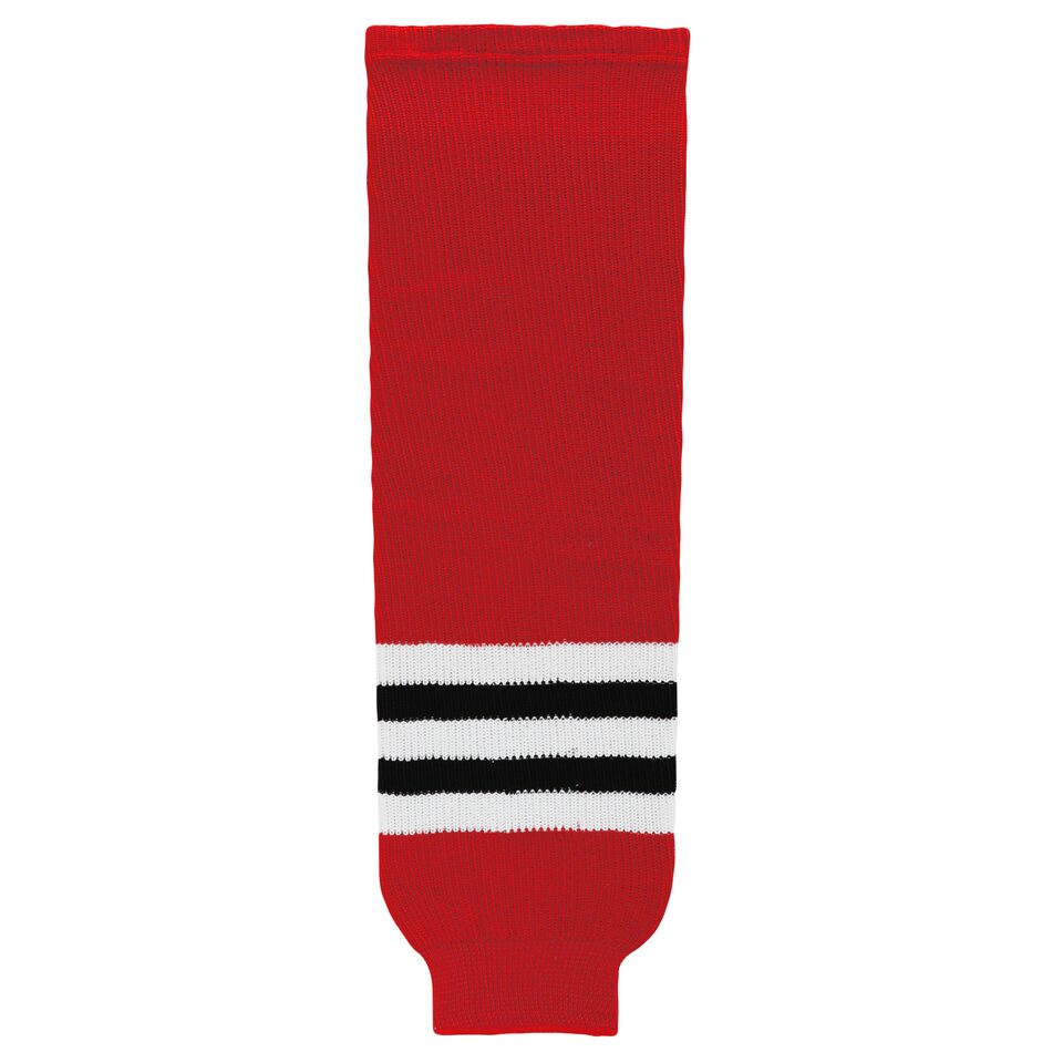 The HS630 Knitted Striped Hockey Socks is made of knitted fabric, for durable hockey socks. These knitted striped hockey socks are chicago red but many other colours are available on our website. They are available in youth, intermediate & adult sizes.