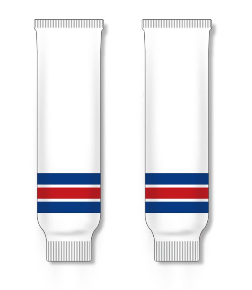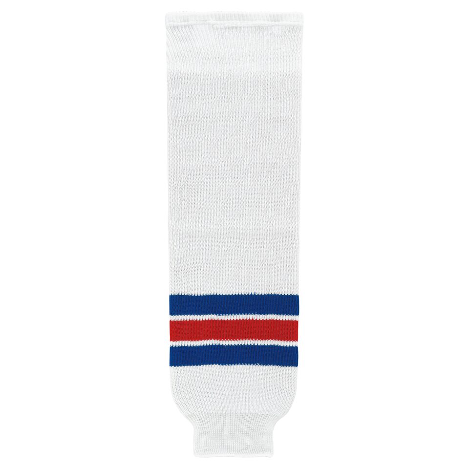 The HS630 Knitted Striped Hockey Socks is made of knitted fabric, for durable hockey socks. These knitted striped hockey socks are new york rangers white but many other colours are available on our website. They are available in youth, intermediate & adult sizes.