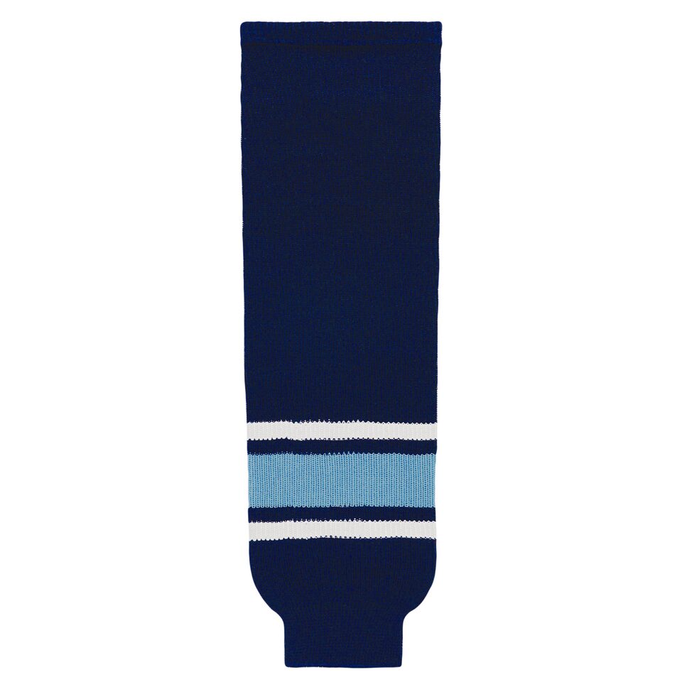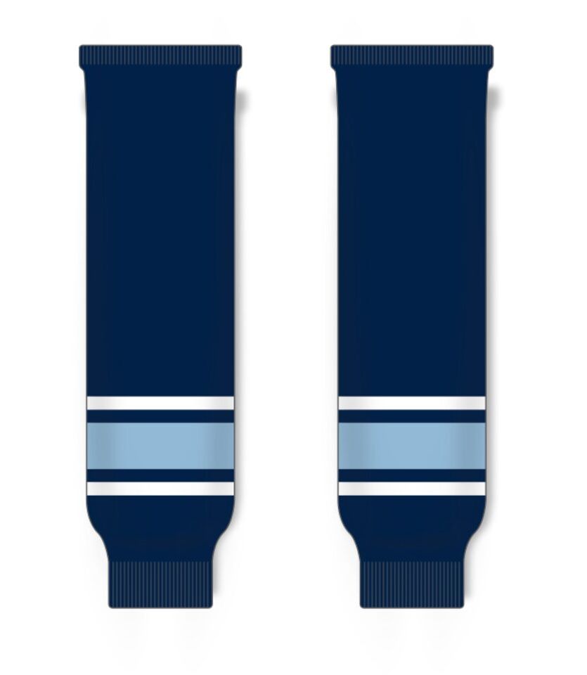 The HS630 Knitted Striped Hockey Socks is made of knitted fabric, for durable hockey socks. These knitted striped hockey socks are maine navy but many other colours are available on our website. They are available in youth, intermediate & adult sizes.