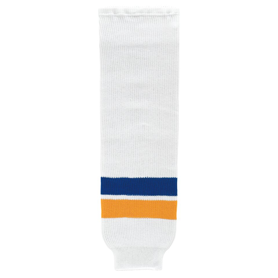 The HS630 Knitted Striped Hockey Socks is made of knitted fabric, for durable hockey socks. These knitted striped hockey socks are 2014 st. louis white but many other colours are available on our website. They are available in youth, intermediate & adult sizes.