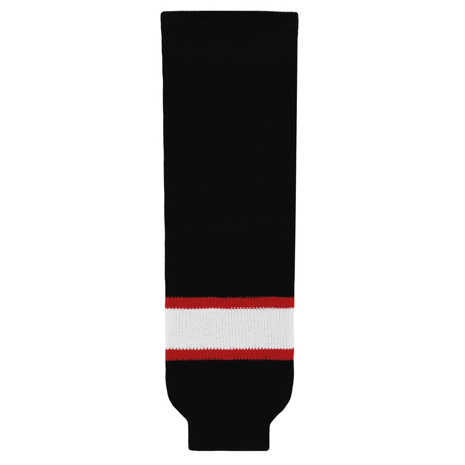 The HS630 Knitted Striped Hockey Socks is made of knitted fabric, for durable hockey socks. These knitted striped hockey socks are ottawa black with white stripe but many other colours are available on our website. They are available in youth, intermediate & adult sizes.