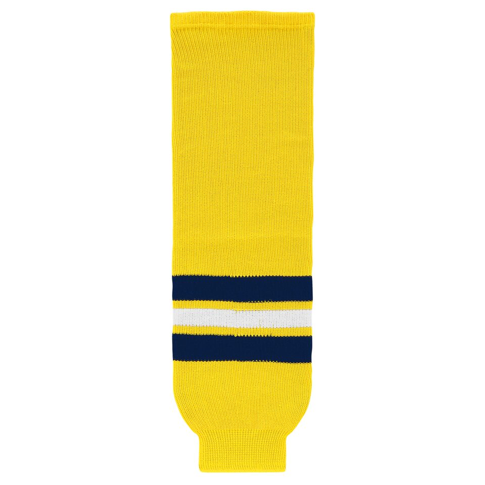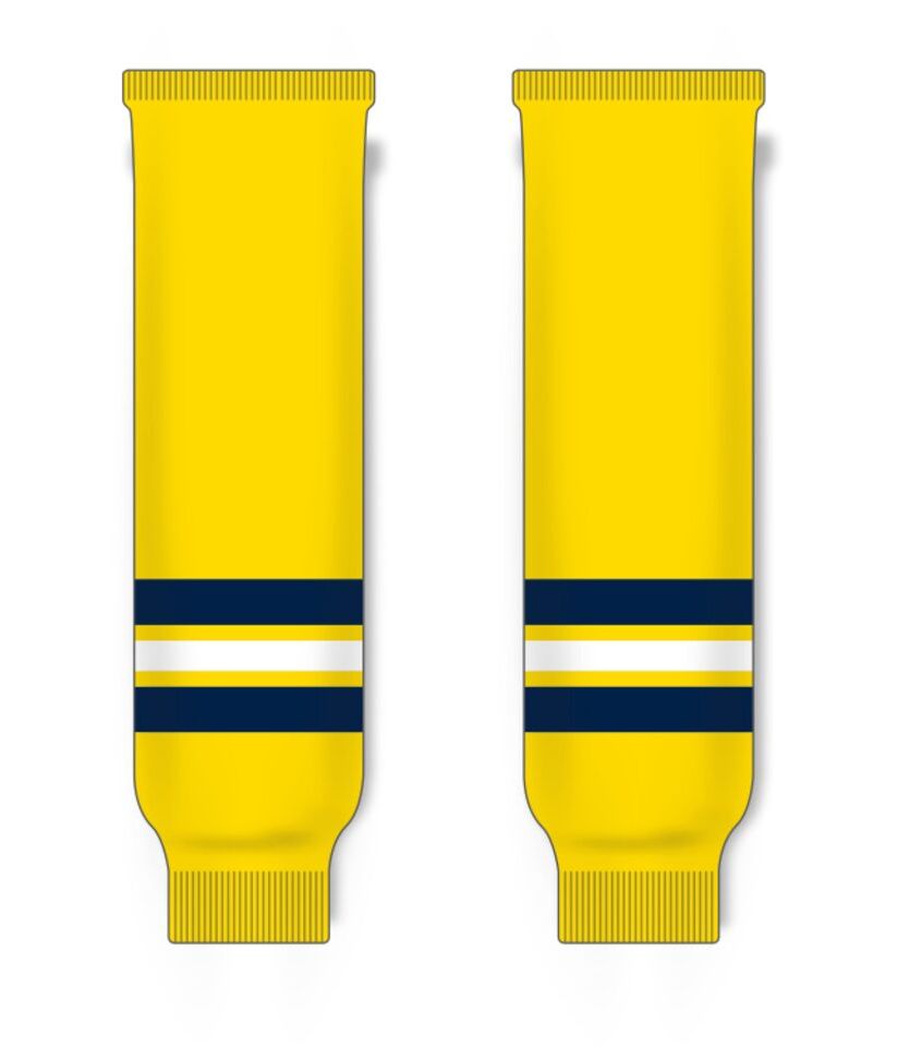 The HS630 Knitted Striped Hockey Socks is made of knitted fabric, for durable hockey socks. These knitted striped hockey socks are 2011 michigan maize but many other colours are available on our website. They are available in youth, intermediate & adult sizes.