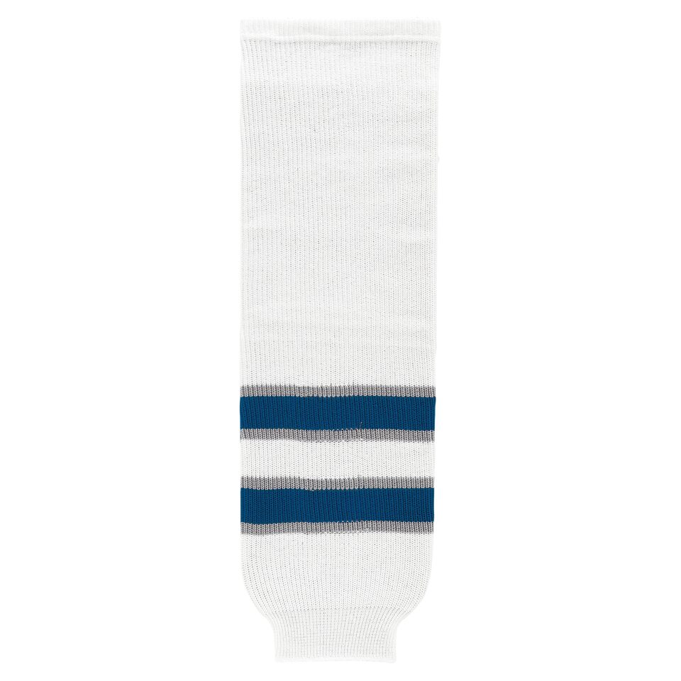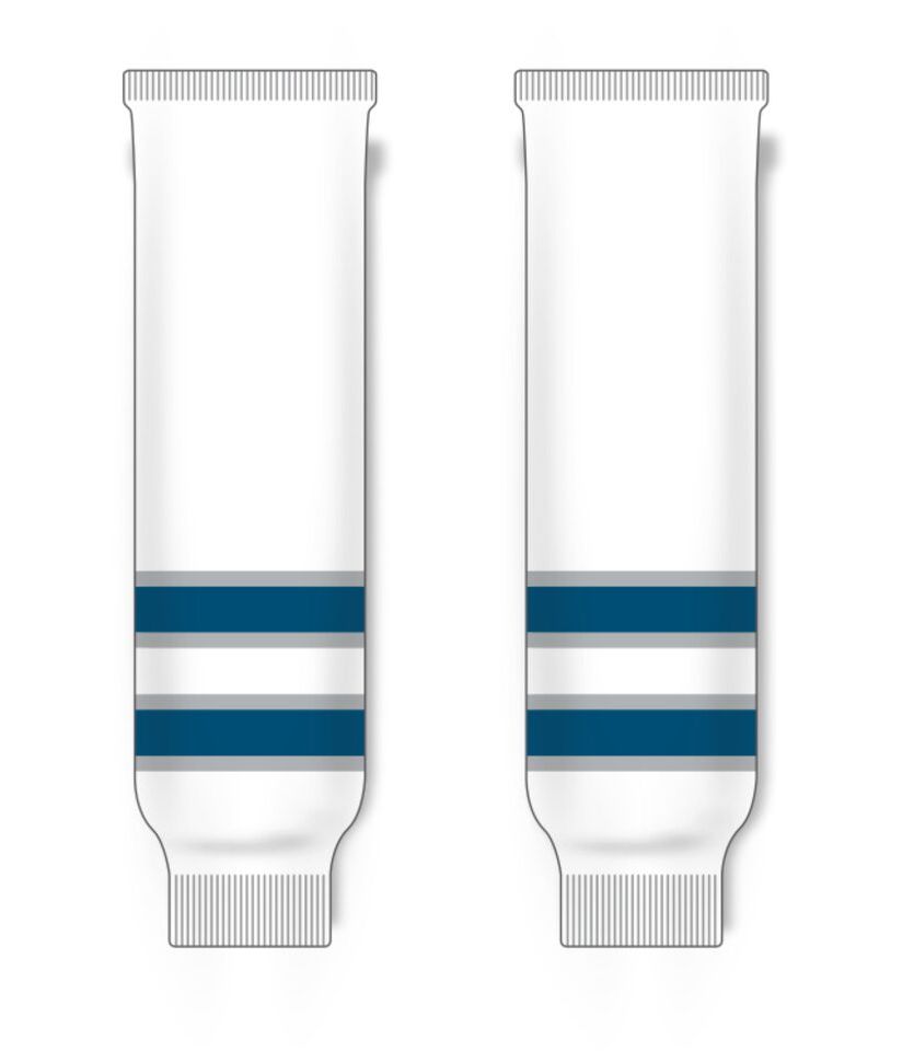 The HS630 Knitted Striped Hockey Socks is made of knitted fabric, for durable hockey socks. These knitted striped hockey socks are 2011 winnipeg white but many other colours are available on our website. They are available in youth, intermediate & adult sizes.
