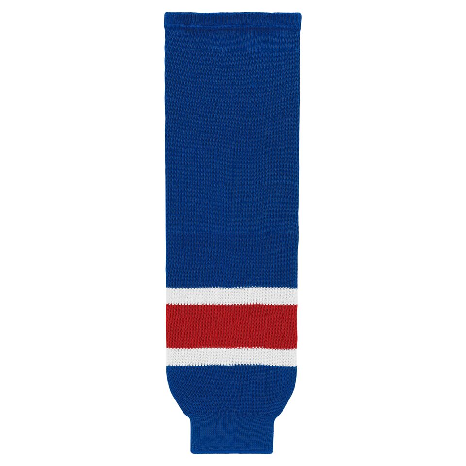 The HS630 Knitted Striped Hockey Socks is made of knitted fabric, for durable hockey socks. These knitted striped hockey socks are new york royal but many other colours are available on our website. They are available in youth, intermediate & adult sizes.