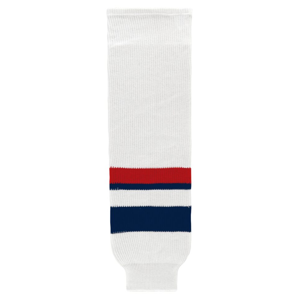 The HS630 Knitted Striped Hockey Socks is made of knitted fabric, for durable hockey socks. These knitted striped hockey socks are 2005 team usa white but many other colours are available on our website. They are available in youth, intermediate & adult sizes.